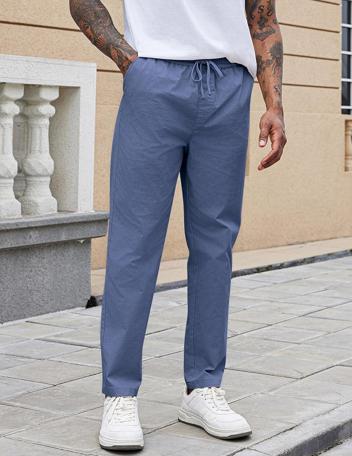 COOFANDY Mens Casual Pants Elastic Waist Drawstring Chino Pants Cotton Twill Trousers with Pockets(Blue)