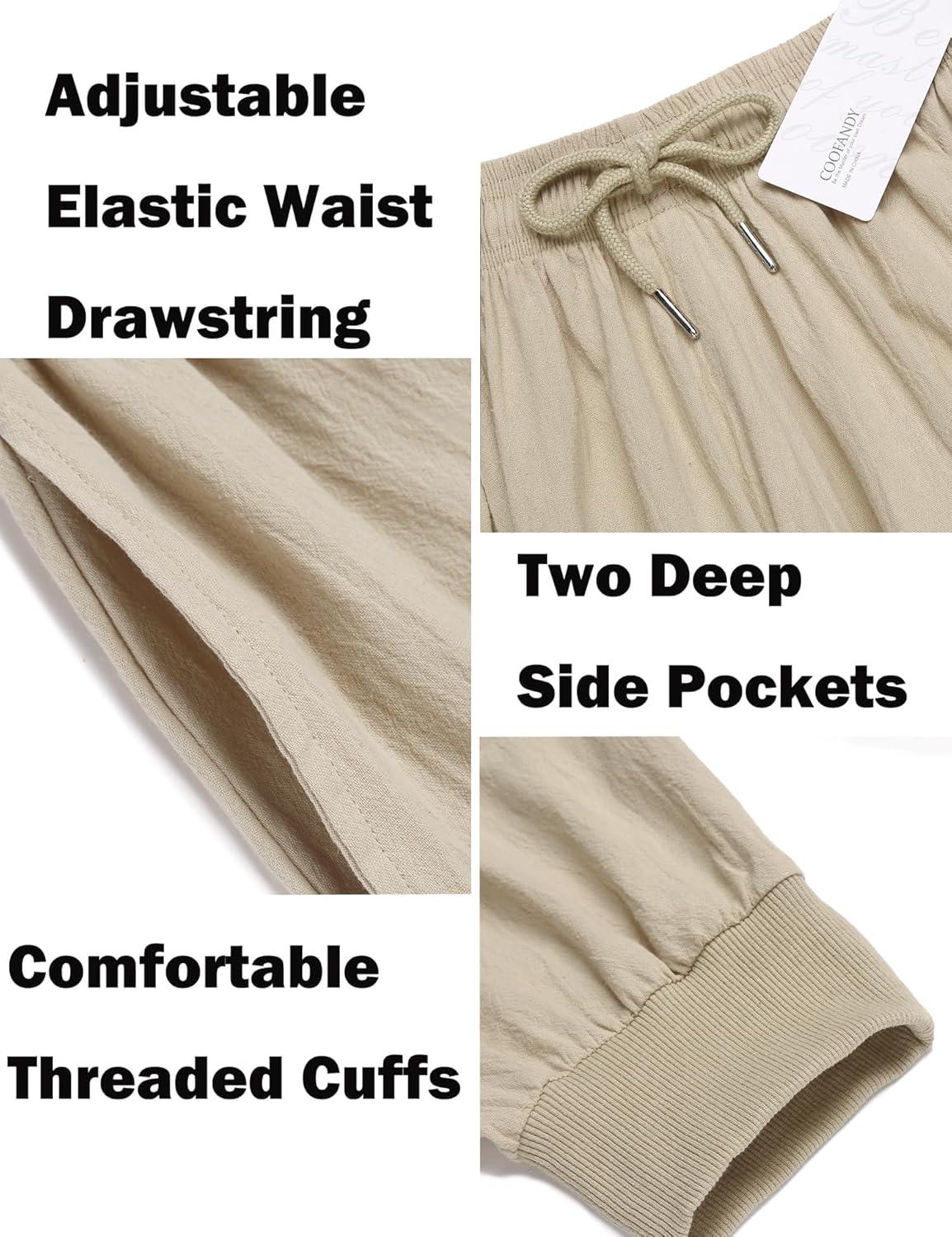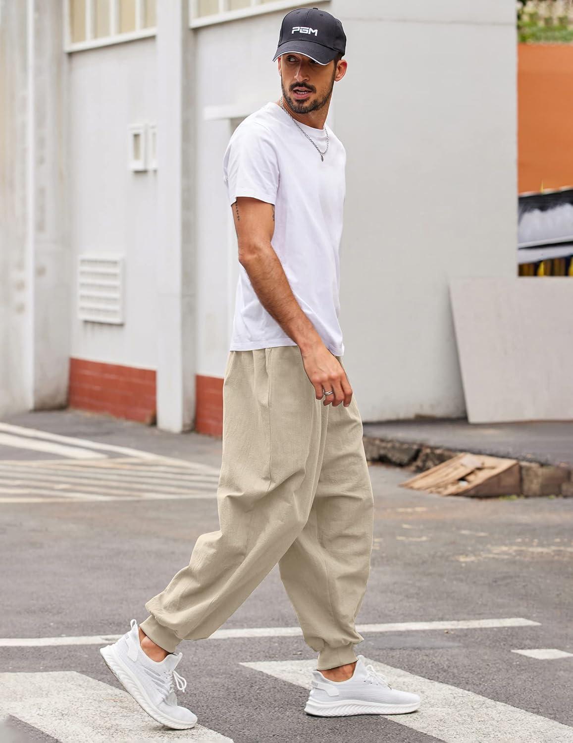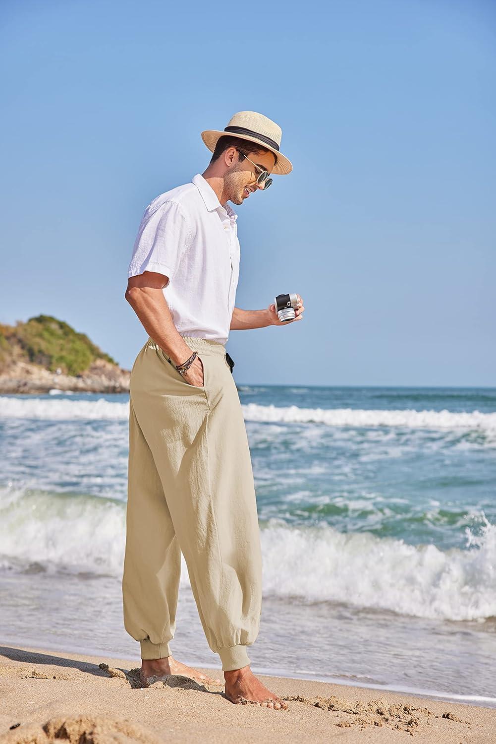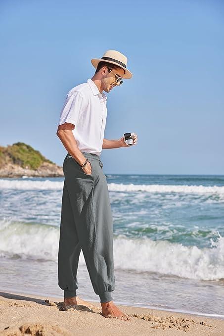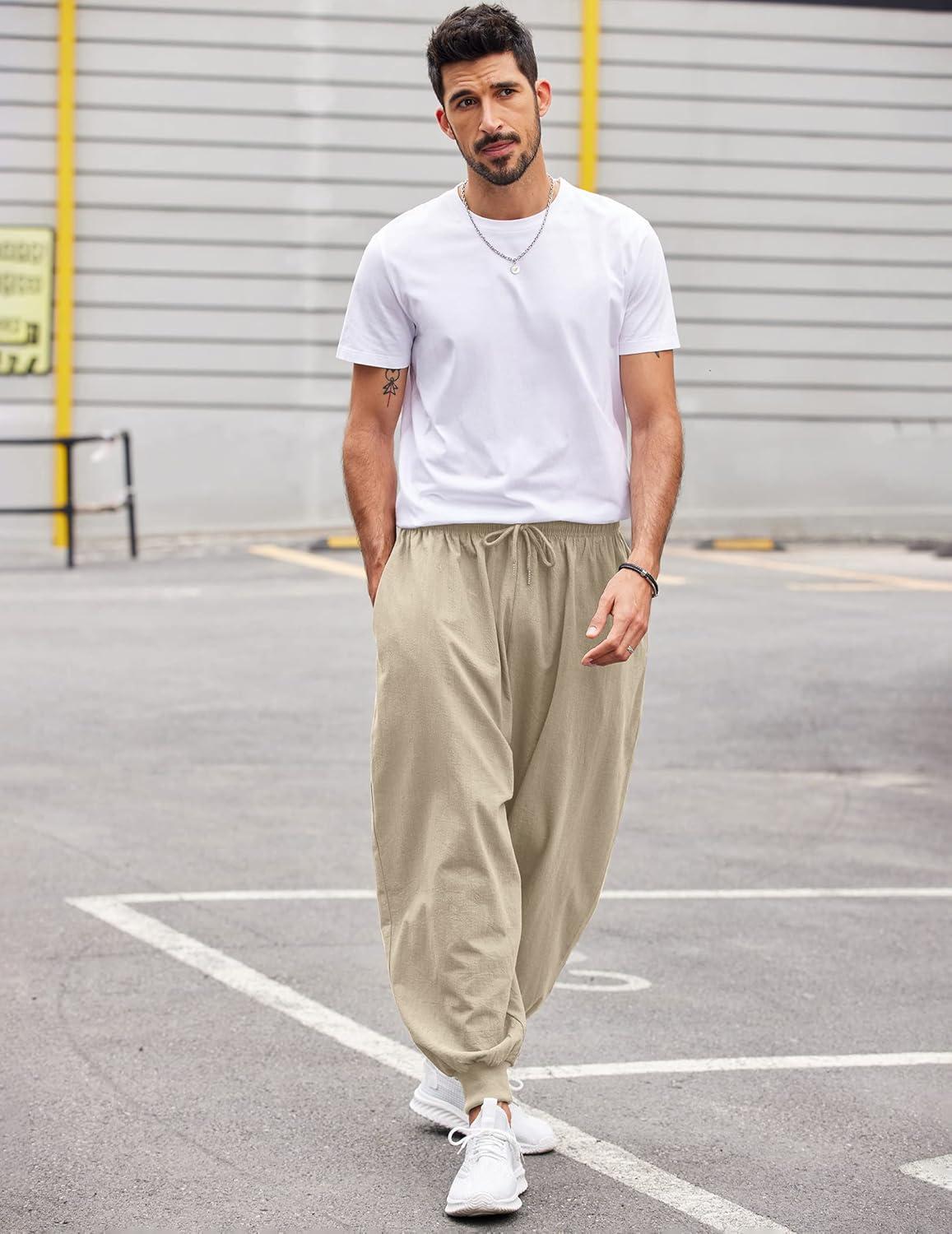 COOFANDY Men Hippie Harem Pants Baggy Linen Cotton Boho Yoga Pants Summer Beach Pants Casual Drop Crotch Trouser(Khaki)