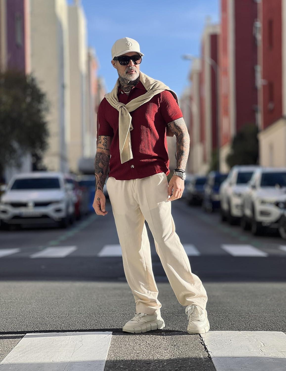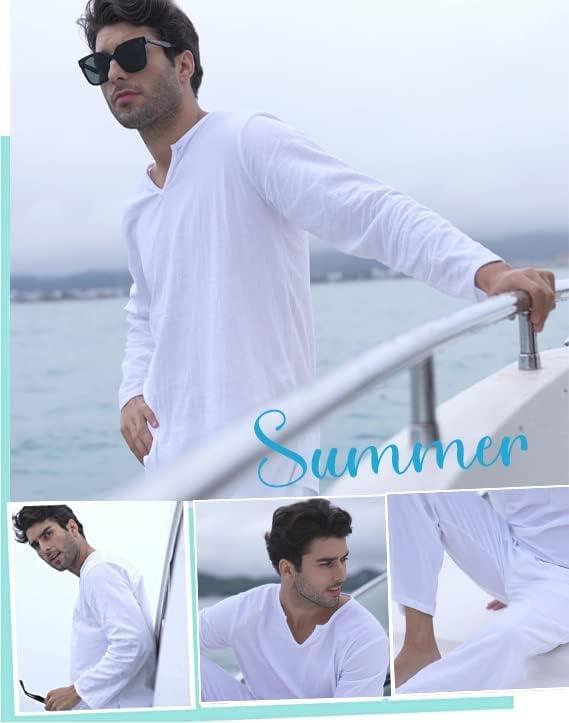 COOFANDY Men’s 2 Pieces Cotton Linen Set Henley Shirt Long Sleeve and Casual Beach Pants Summer Yoga Outfits(01-white)