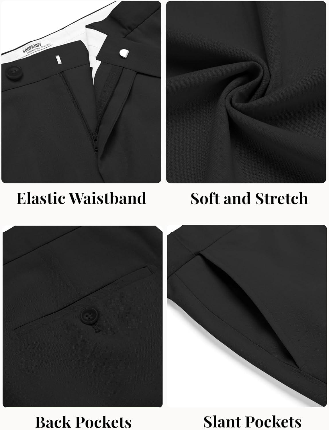 COOFANDY Men Linen Dress Pants Classic Fit Suit Pants Lightweight Wrinkle Free Casual Trousers(Black)
