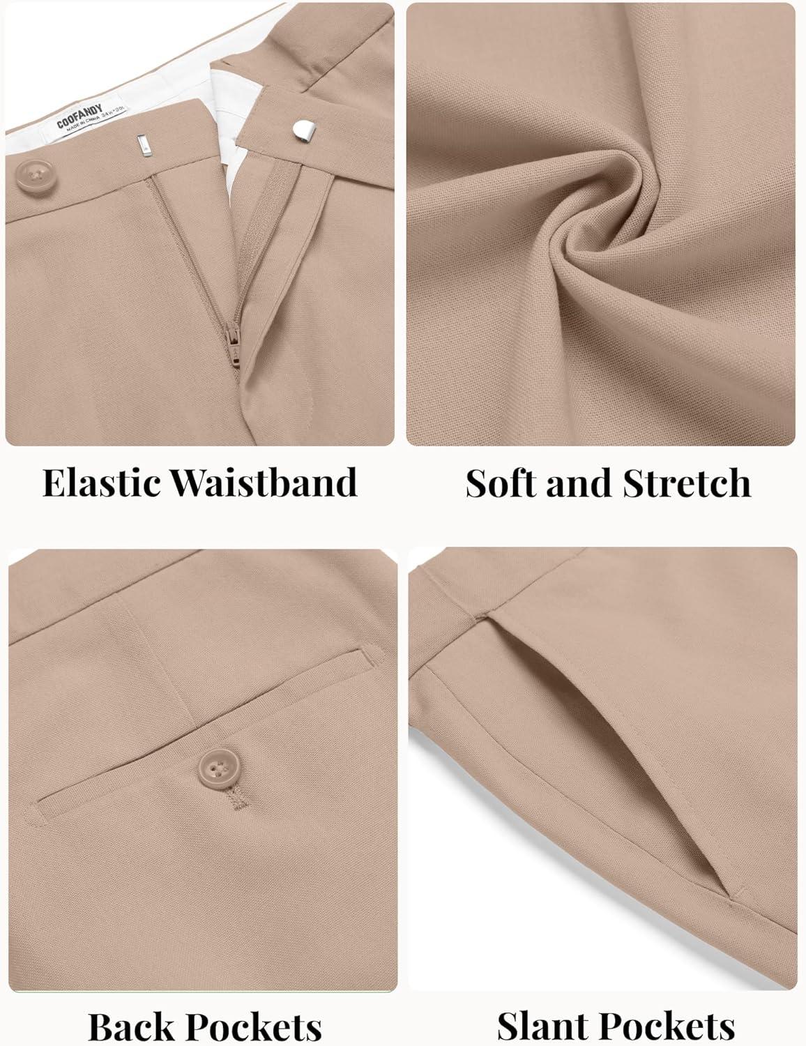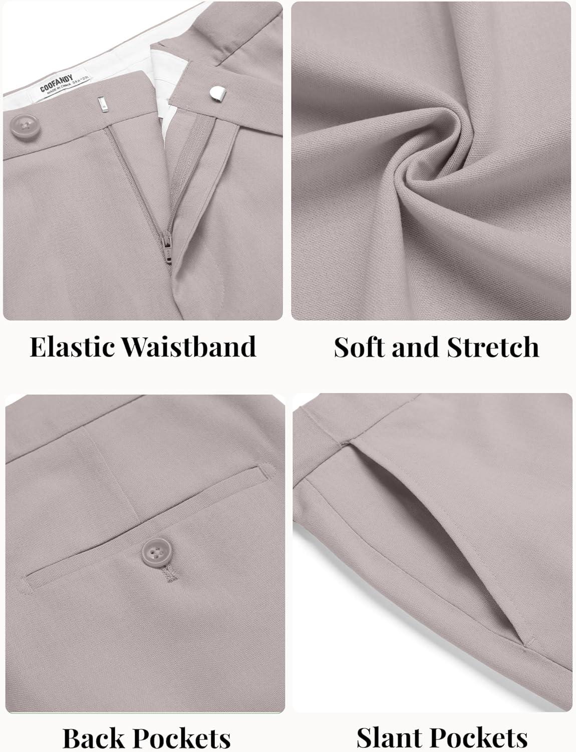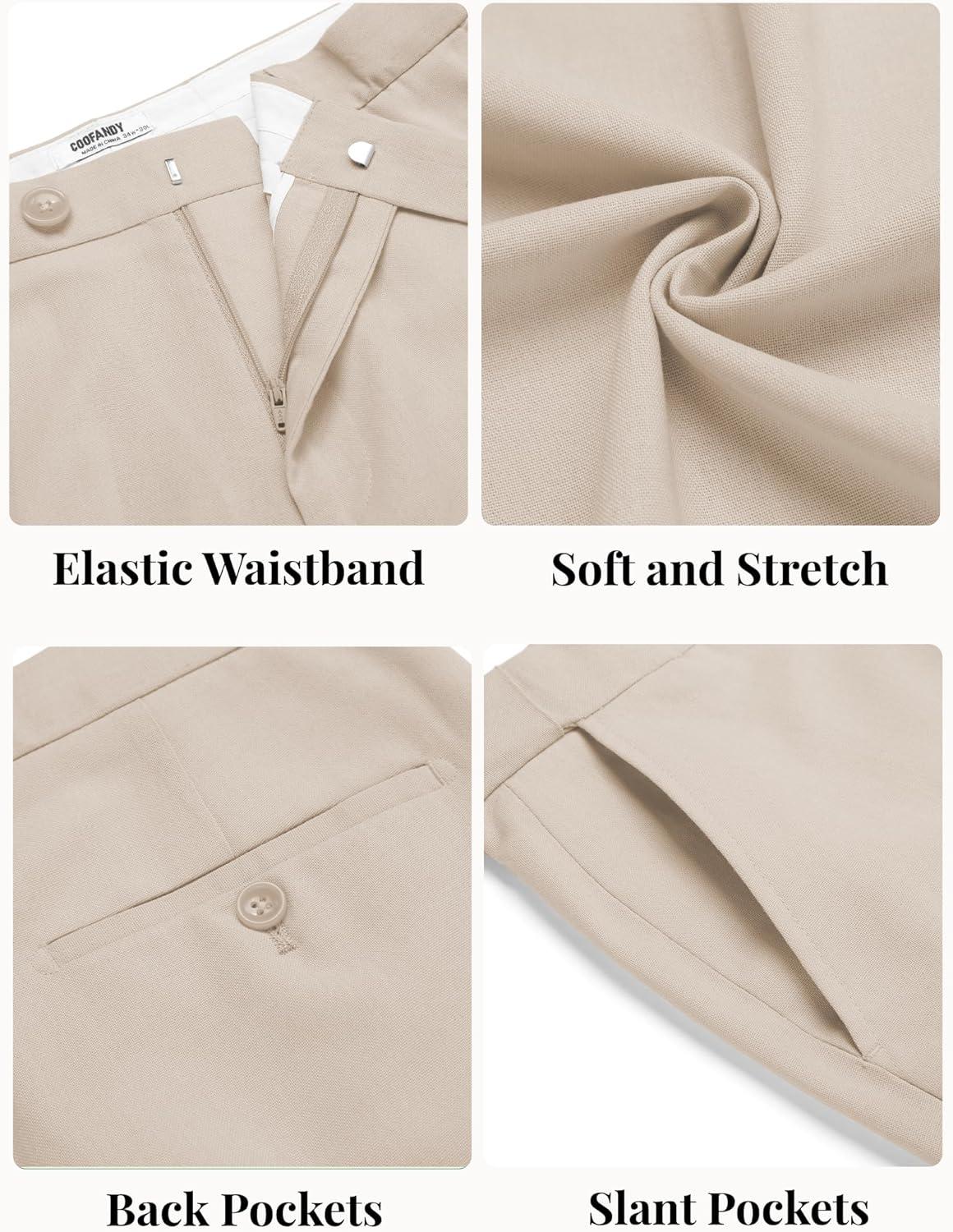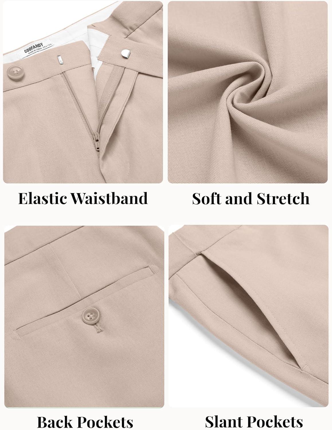 COOFANDY Men Linen Dress Pants Classic Fit Suit Pants Lightweight Wrinkle Free Casual Trousers(Khaki)