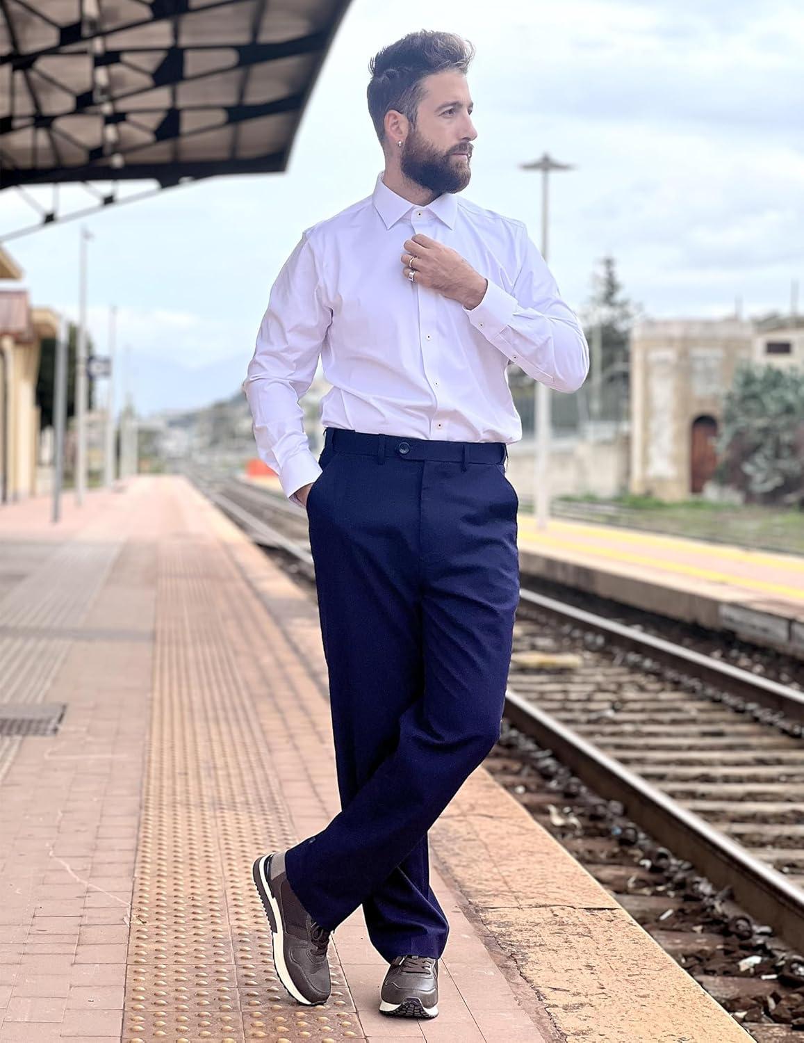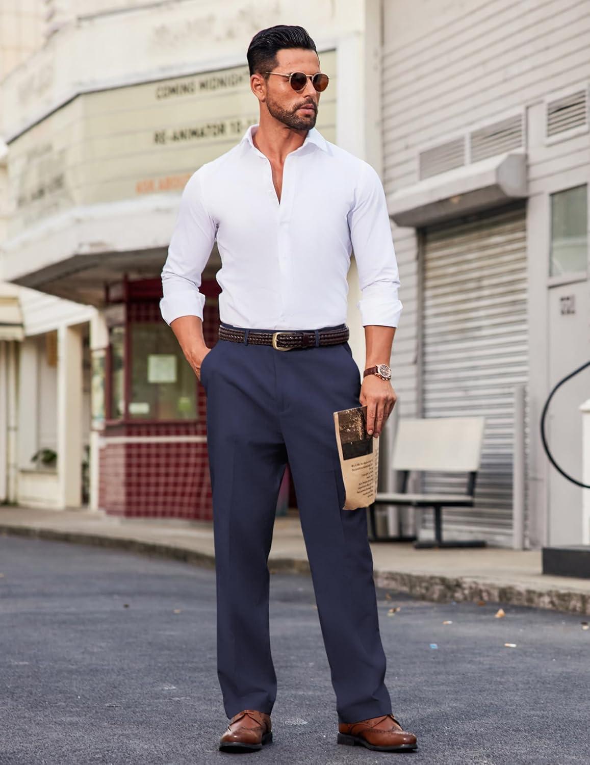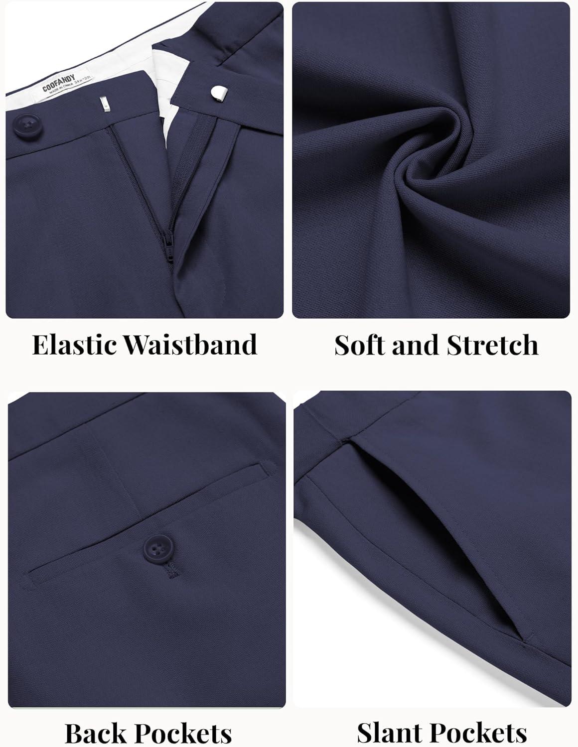 COOFANDY Men Linen Dress Pants Classic Fit Suit Pants Lightweight Wrinkle Free Casual Trousers(Navy Blue)