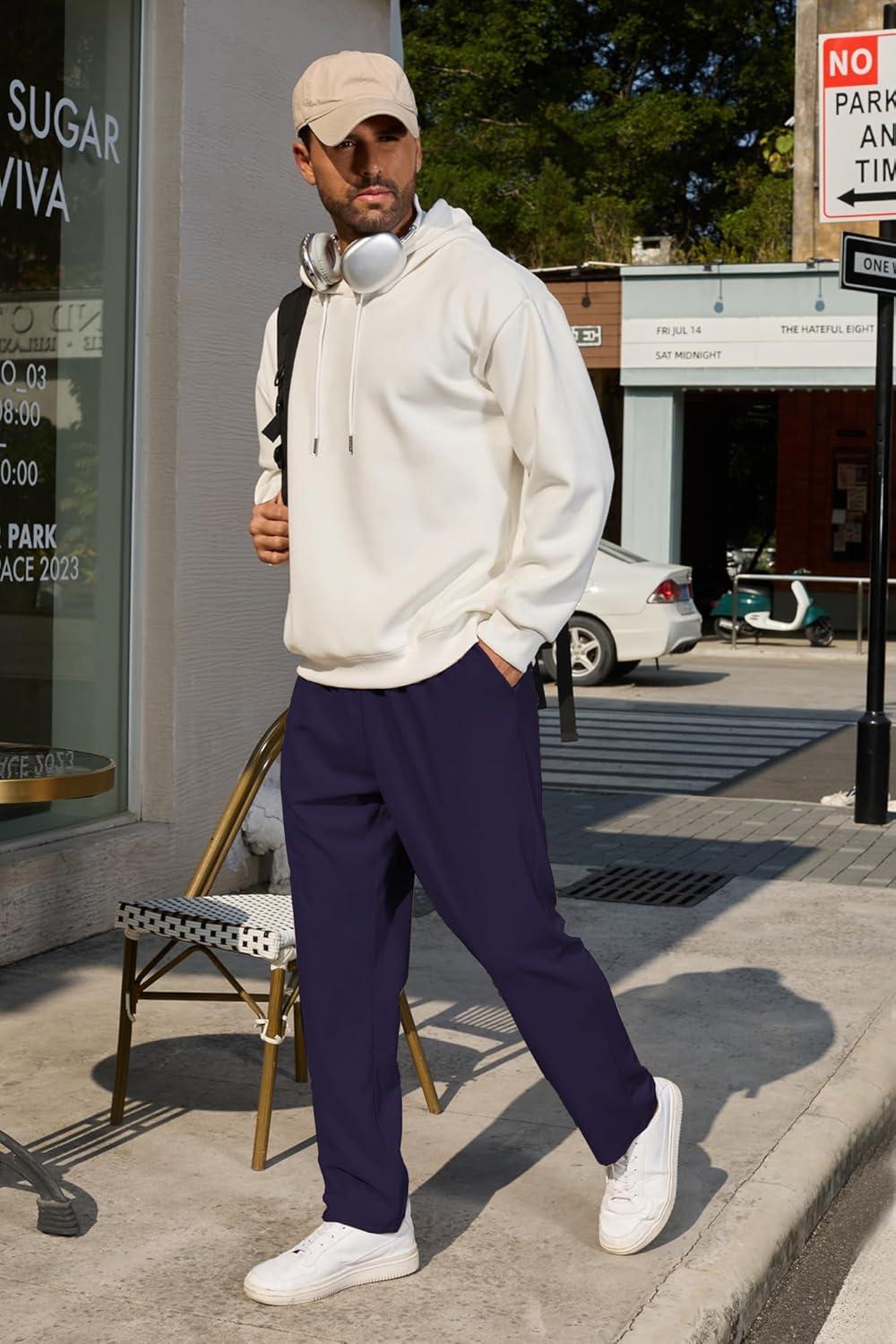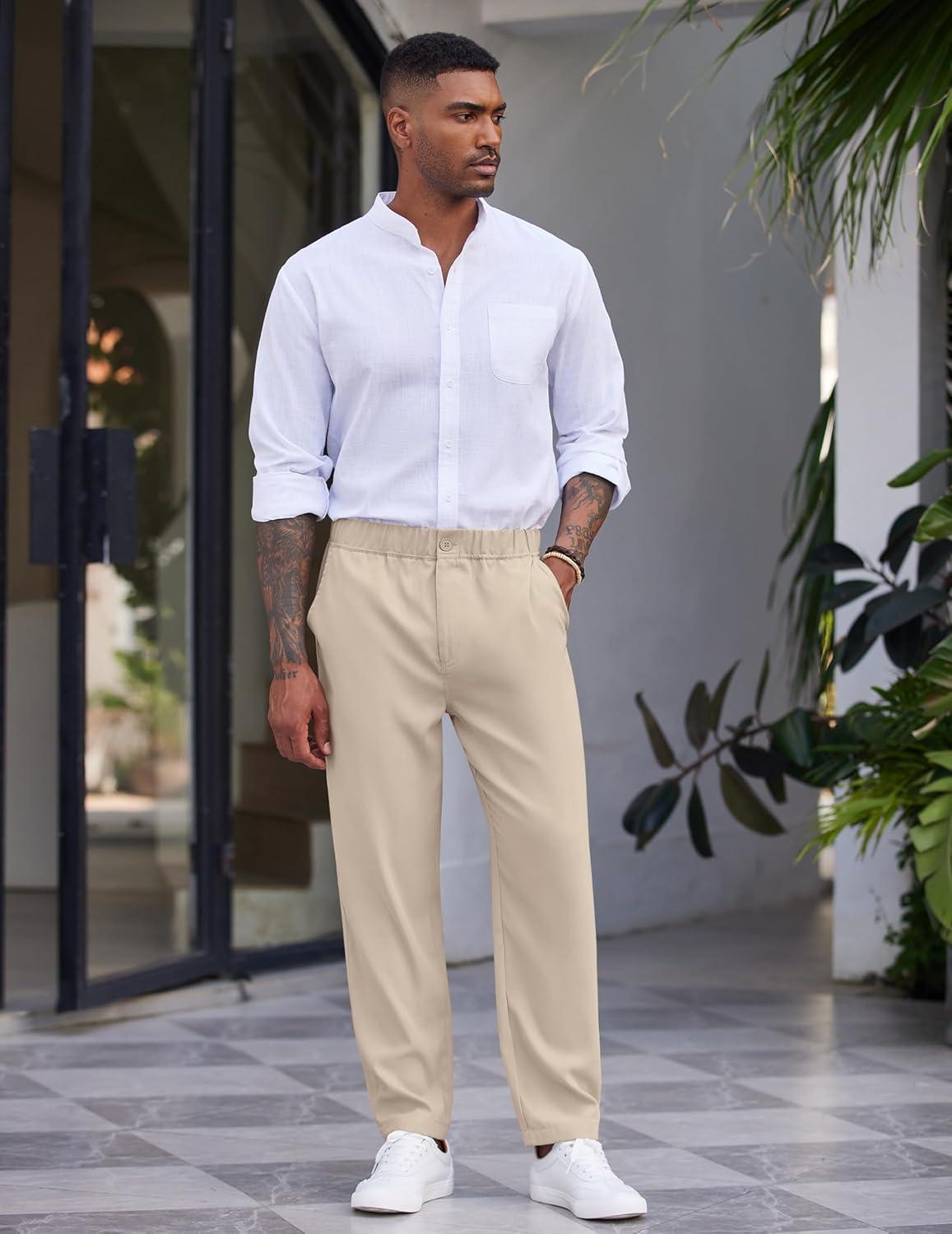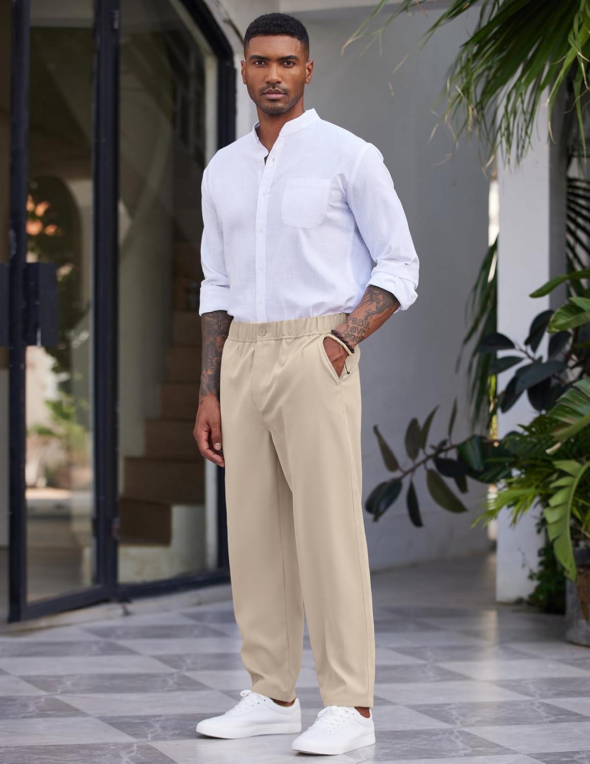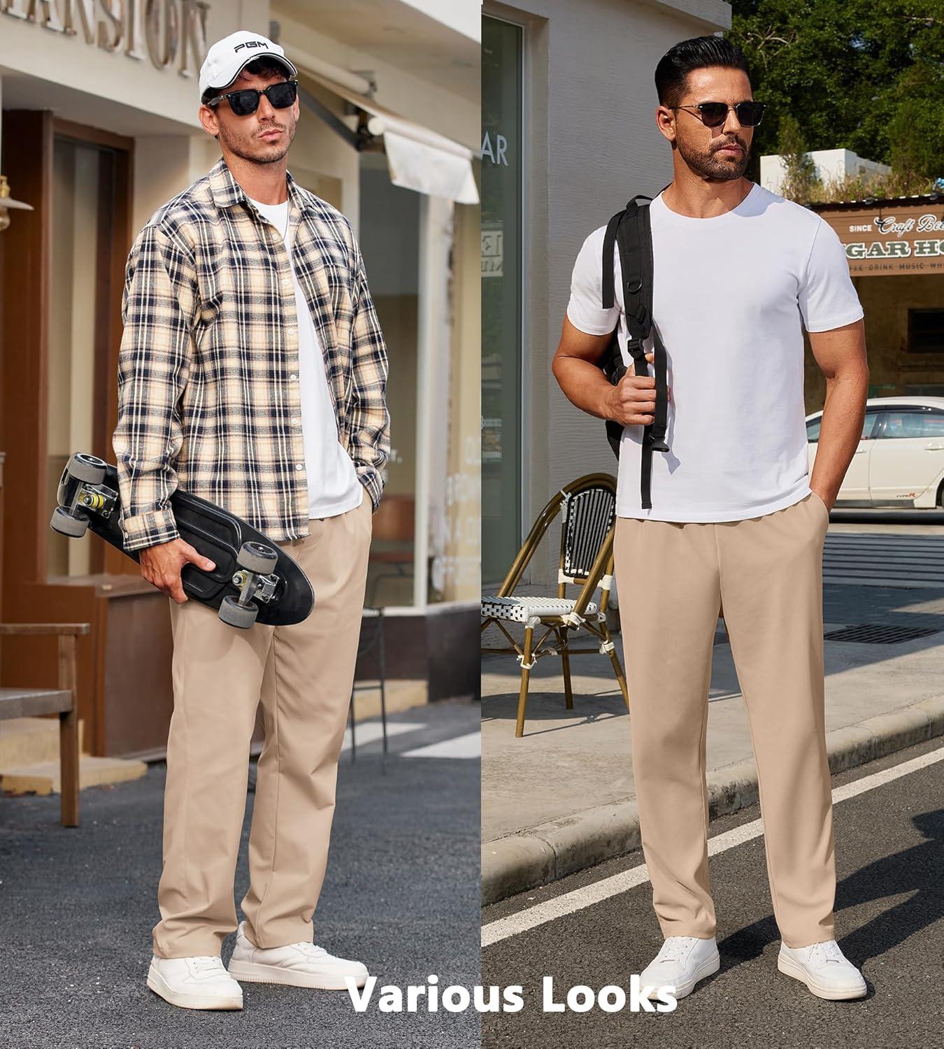 COOFANDY Men’s Chino Pants Relaxed Fit Elastic Waist Basic Flat Front Drawstring Casual Pants