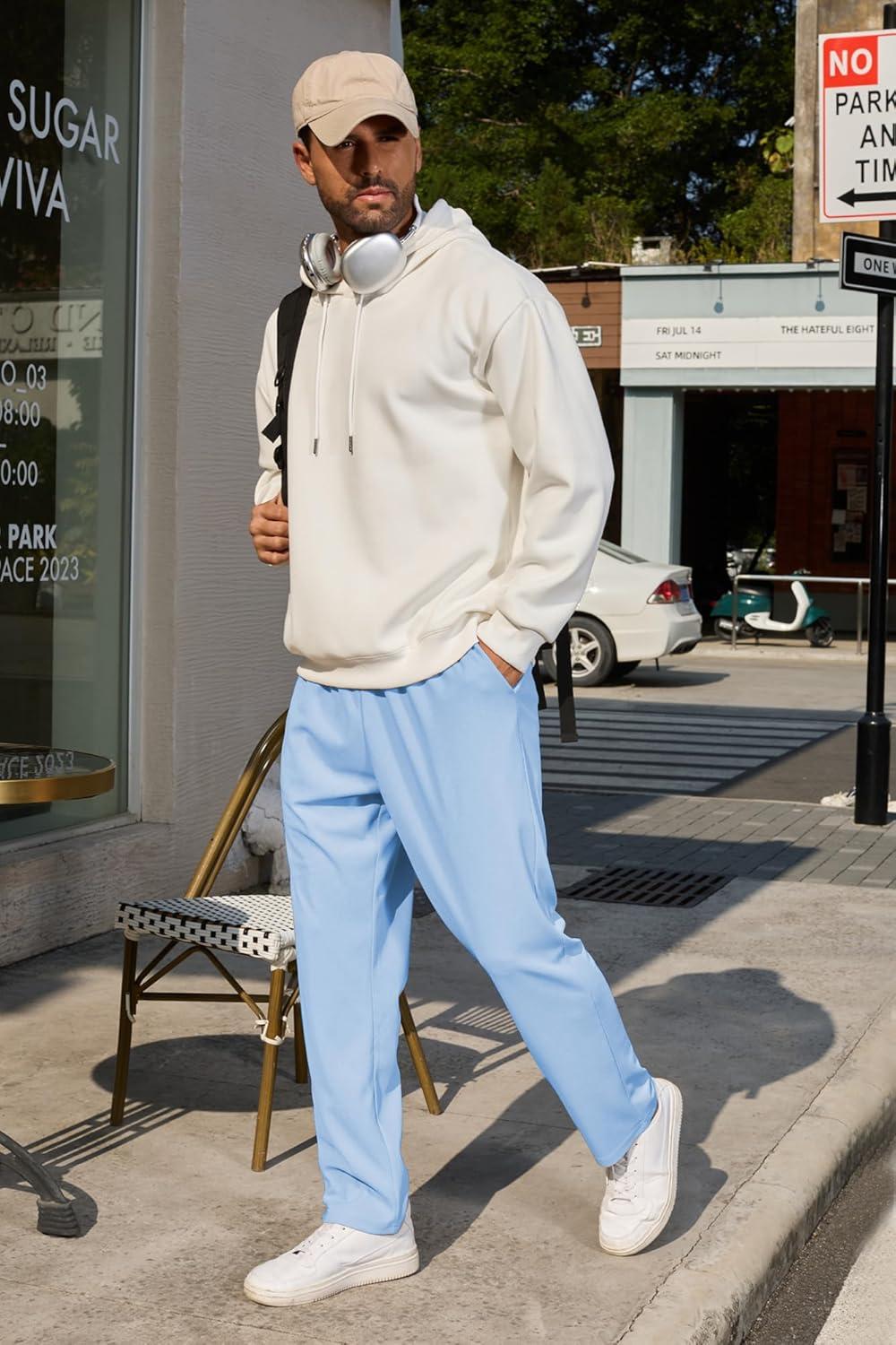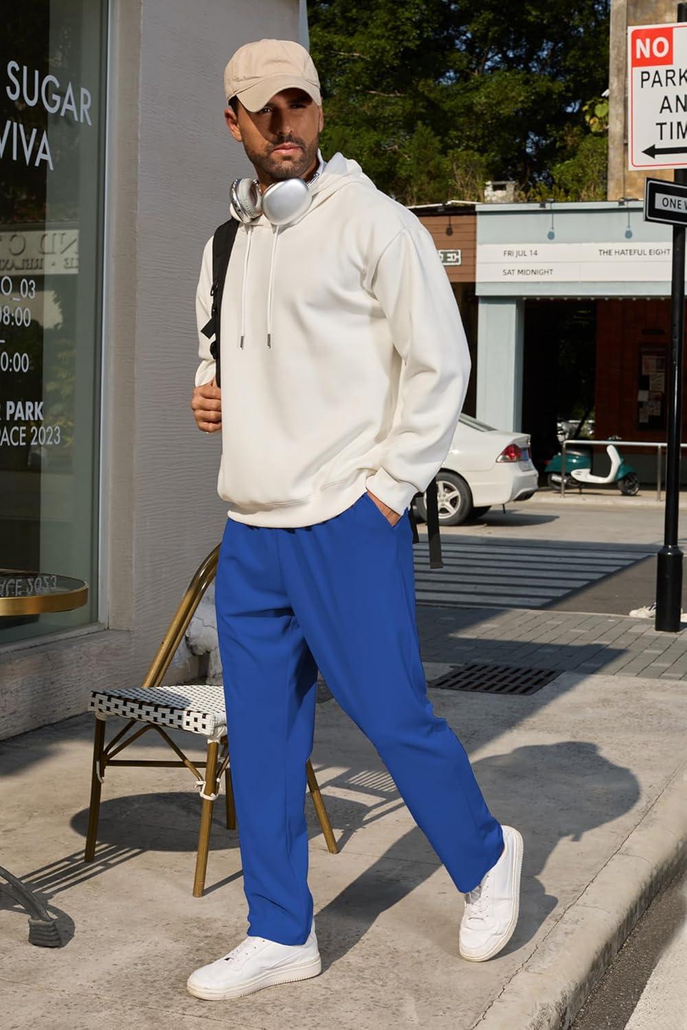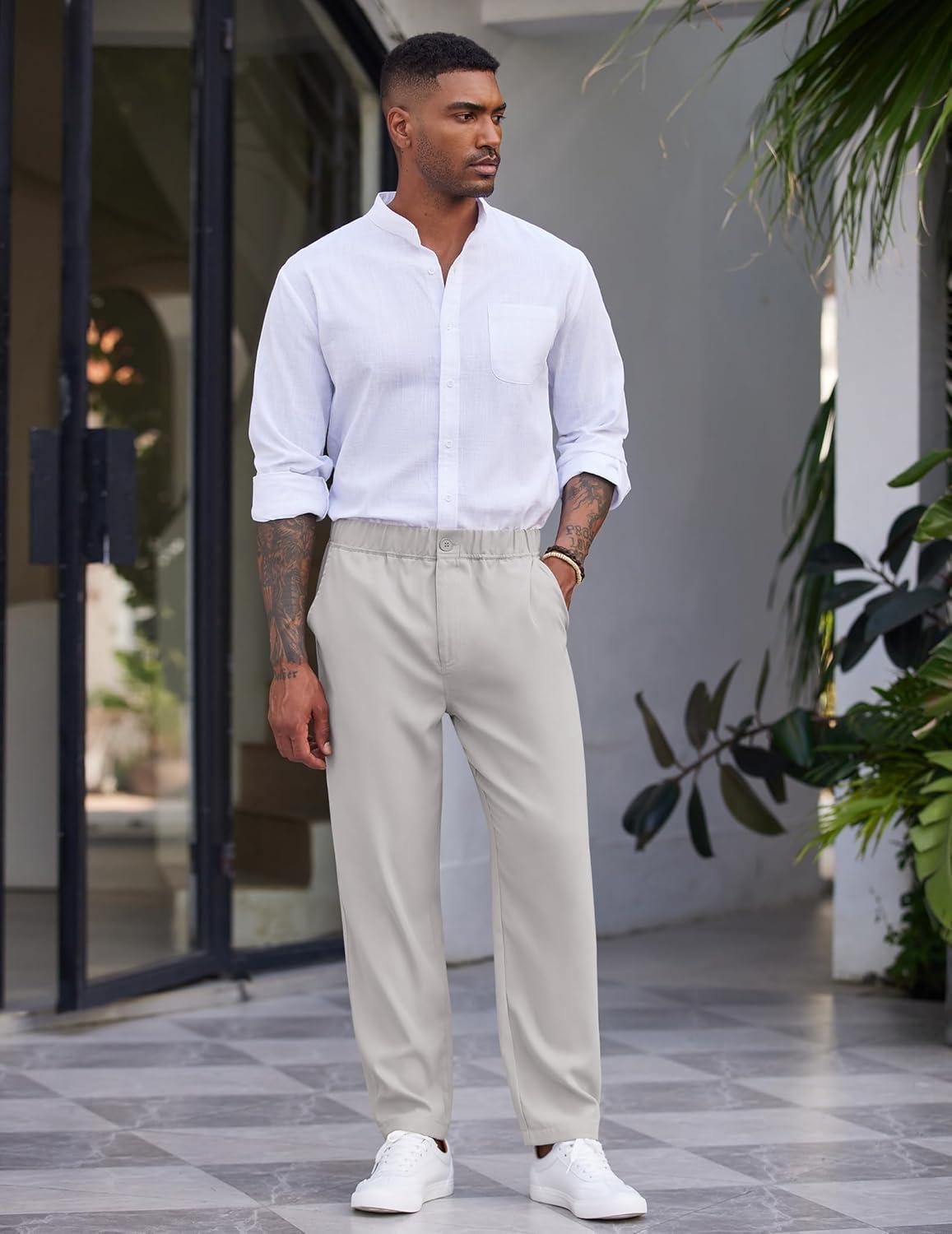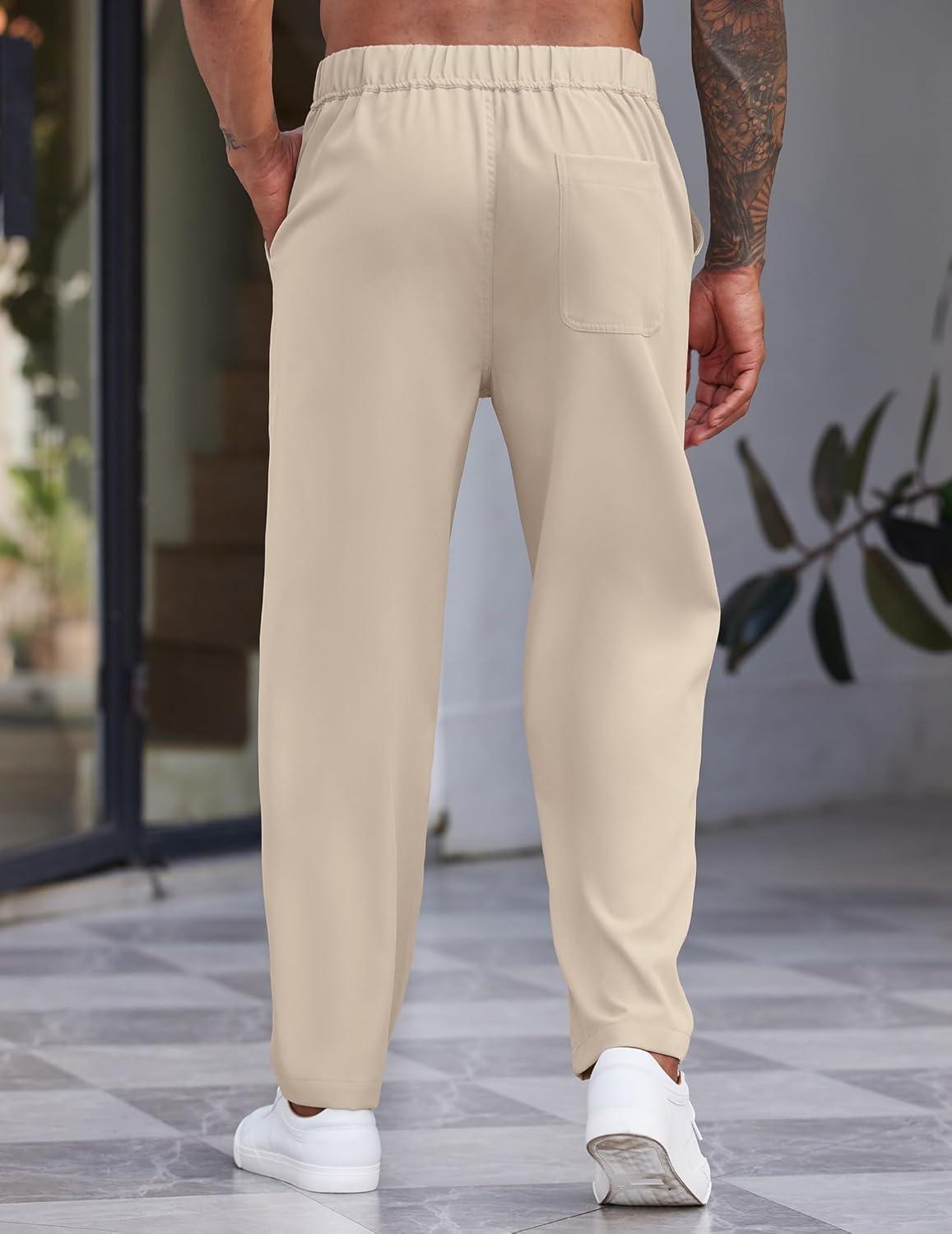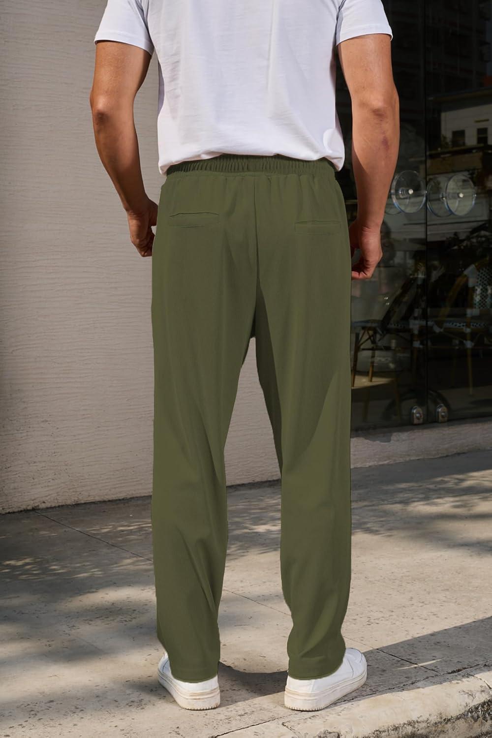 COOFANDY Men’s Chino Pants Relaxed Fit Elastic Waist Basic Flat Front Drawstring Casual Pants