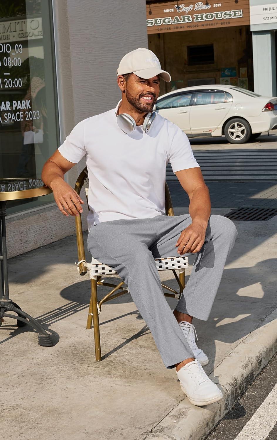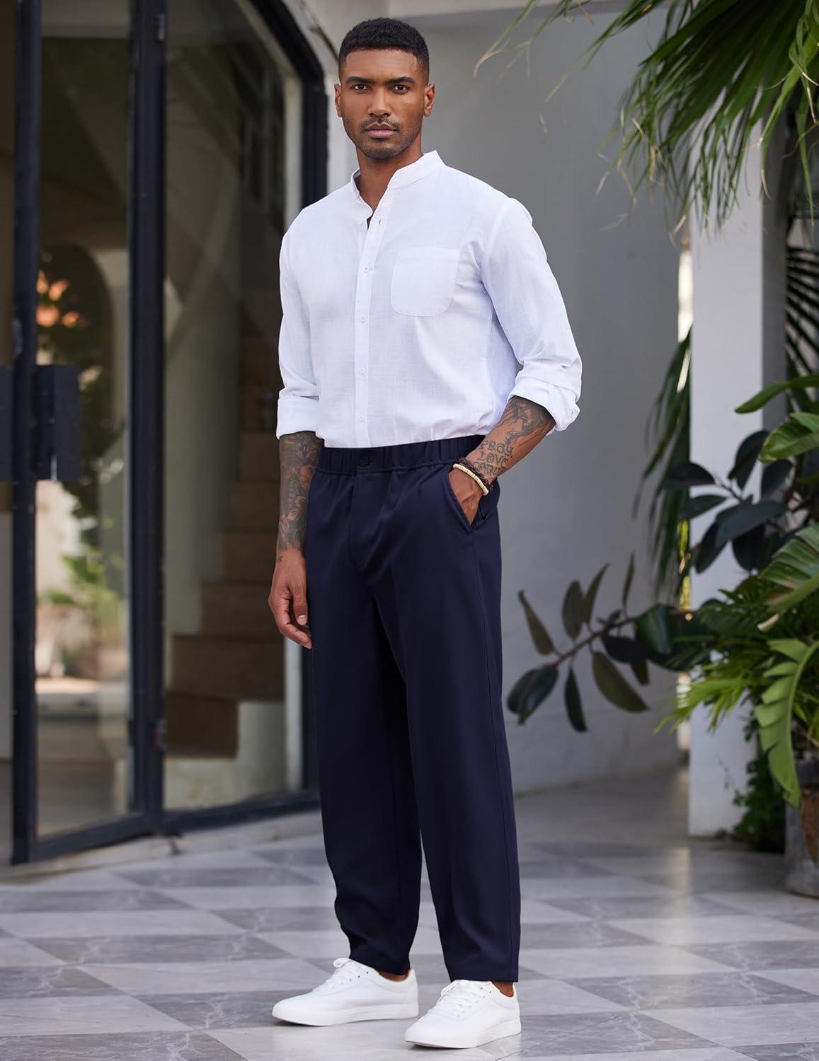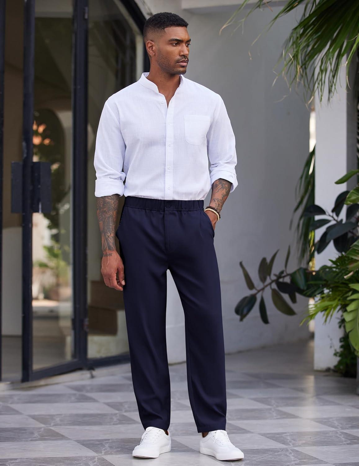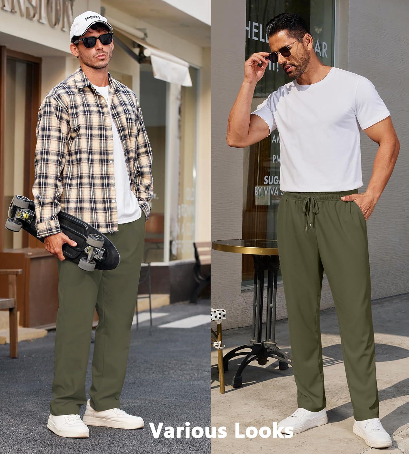 COOFANDY Men’s Chino Pants Relaxed Fit Elastic Waist Basic Flat Front Drawstring Casual Pants