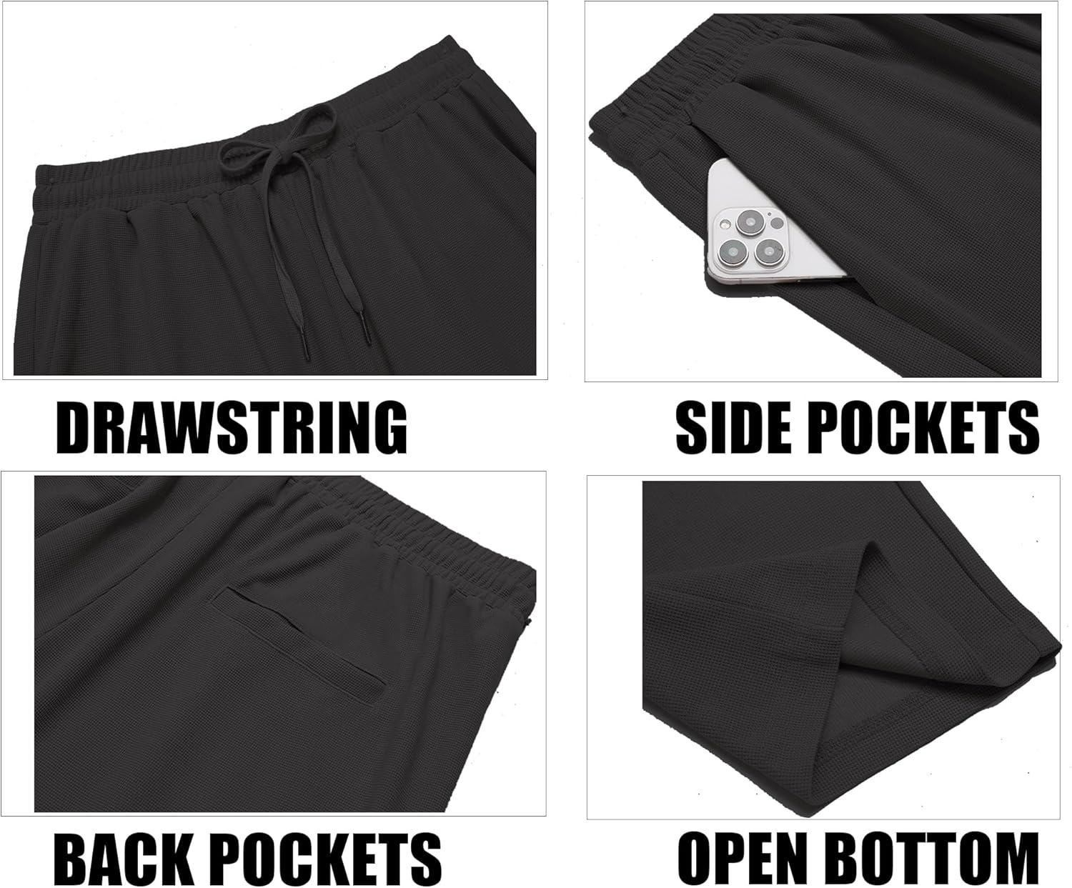 COOFANDY Men’s Casual Pants Waffle Knit Yoga Pants Lightweight Sweatpants Open Bottom Lounge Trousers(Black)