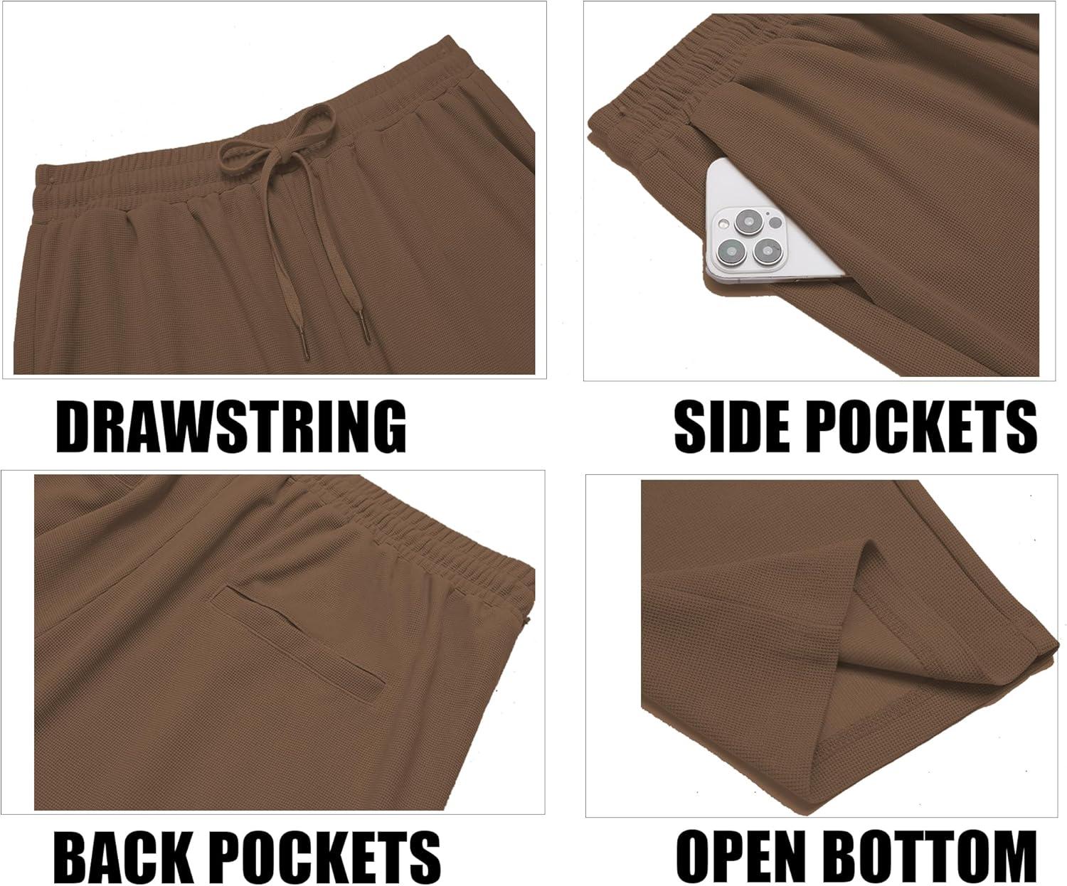 COOFANDY Men’s Casual Pants Waffle Knit Yoga Pants Lightweight Sweatpants Open Bottom Lounge Trousers(Brown)