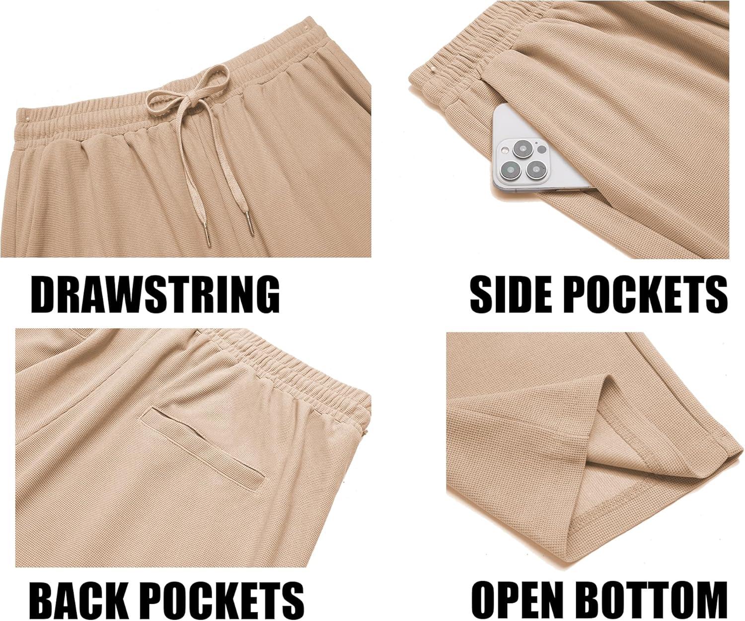 COOFANDY Men’s Casual Pants Waffle Knit Yoga Pants Lightweight Sweatpants Open Bottom Lounge Trousers(Khaki)