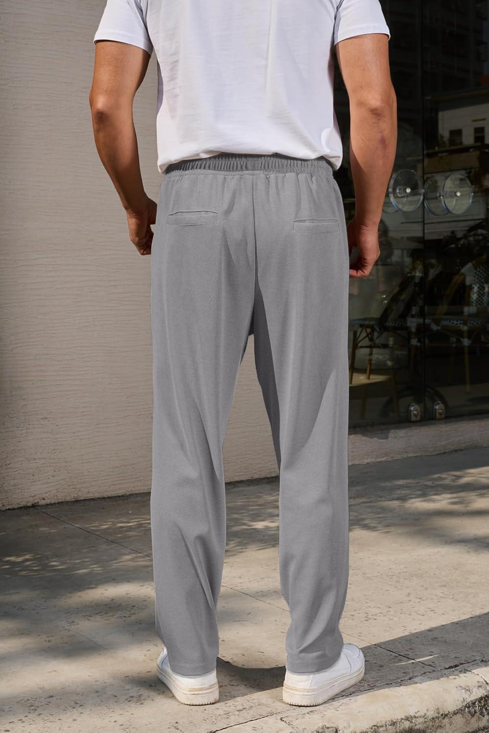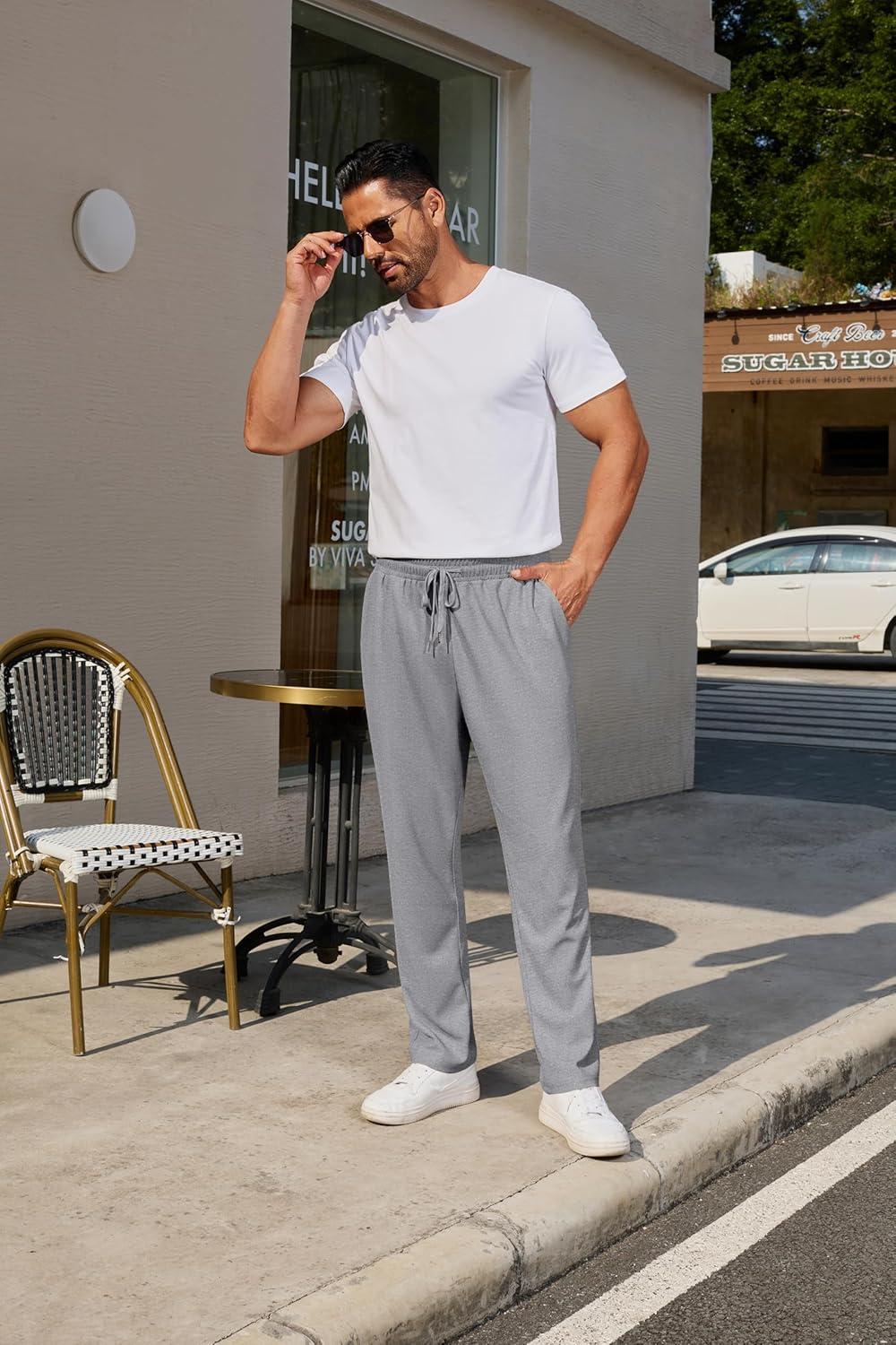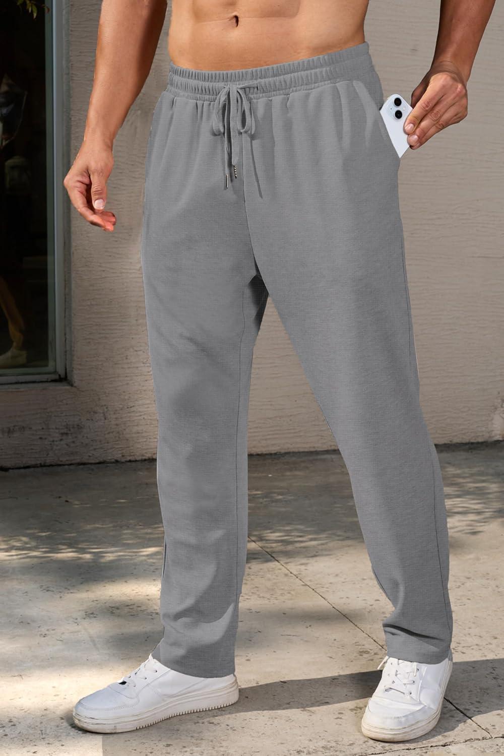 COOFANDY Men’s Casual Pants Waffle Knit Yoga Pants Lightweight Sweatpants Open Bottom Lounge Trousers(Light Grey)