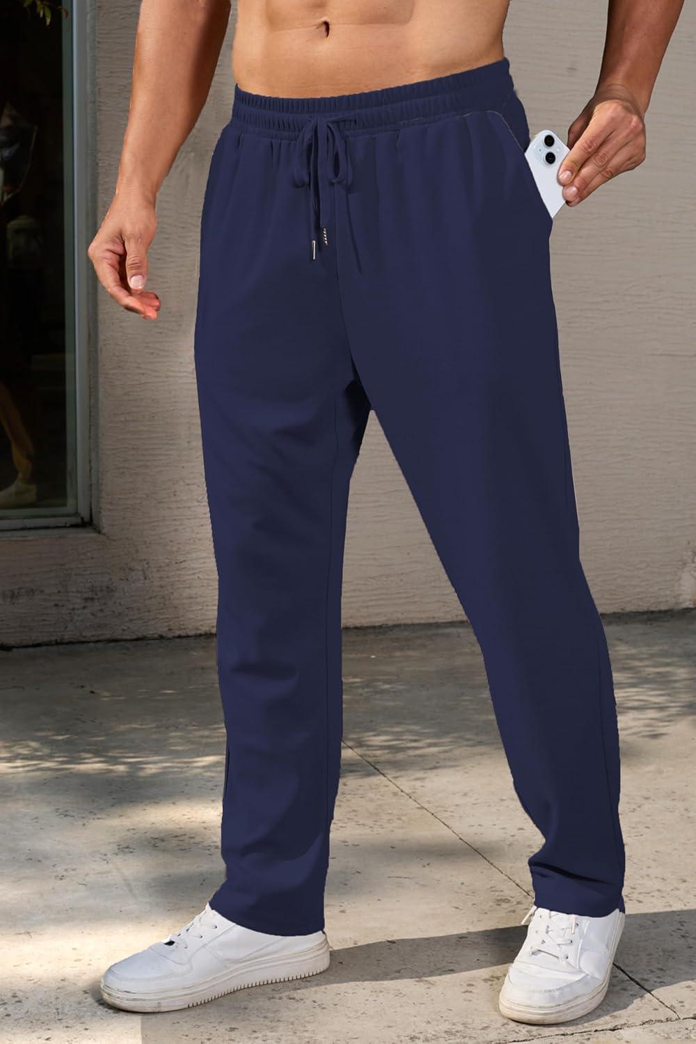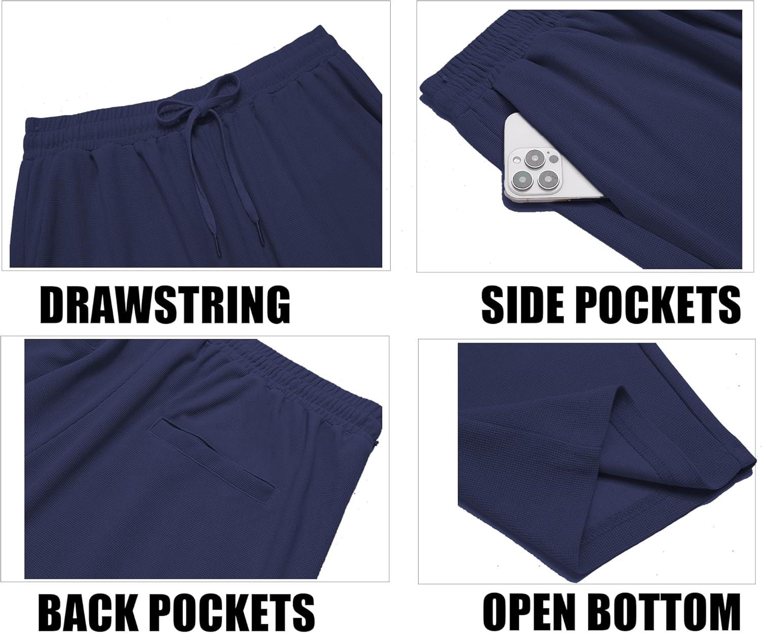 COOFANDY Men’s Casual Pants Waffle Knit Yoga Pants Lightweight Sweatpants Open Bottom Lounge Trousers(Navy Blue)