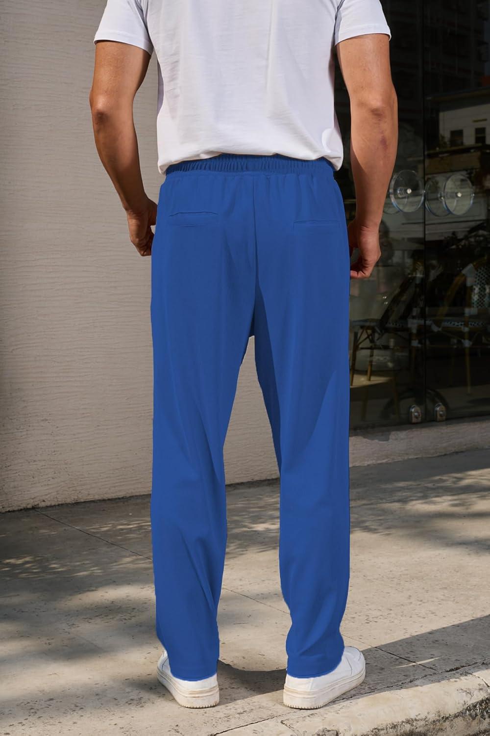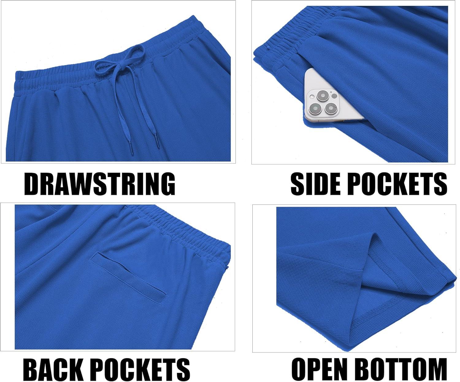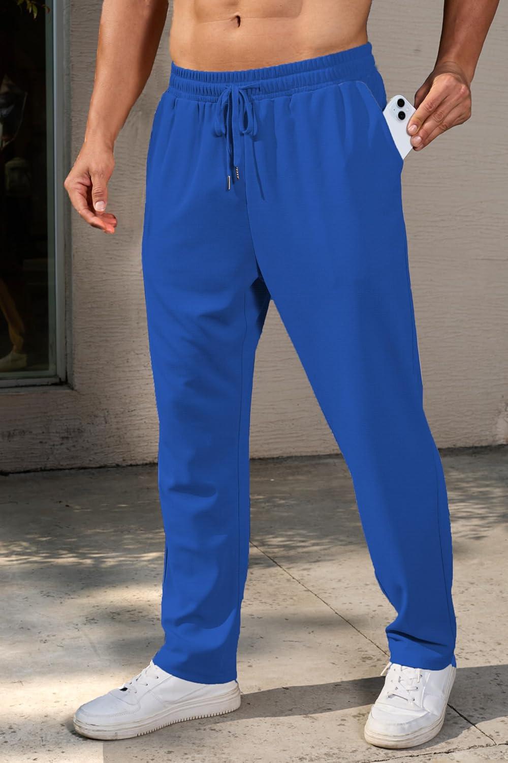 COOFANDY Men’s Casual Pants Waffle Knit Yoga Pants Lightweight Sweatpants Open Bottom Lounge Trousers(Royal Blue)