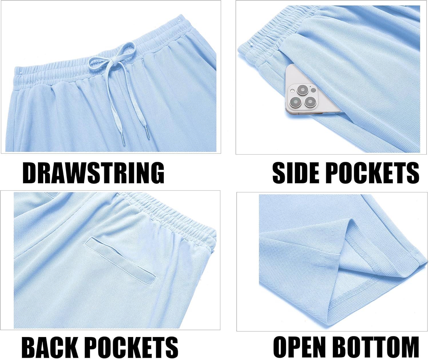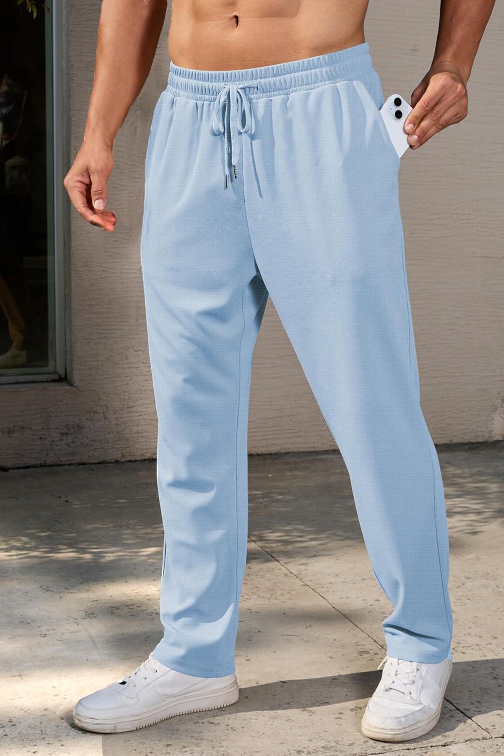 COOFANDY Men’s Casual Pants Waffle Knit Yoga Pants Lightweight Sweatpants Open Bottom Lounge Trousers(Sky Blue)