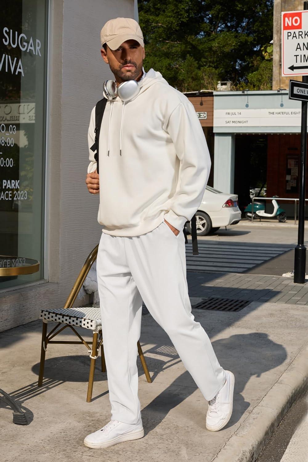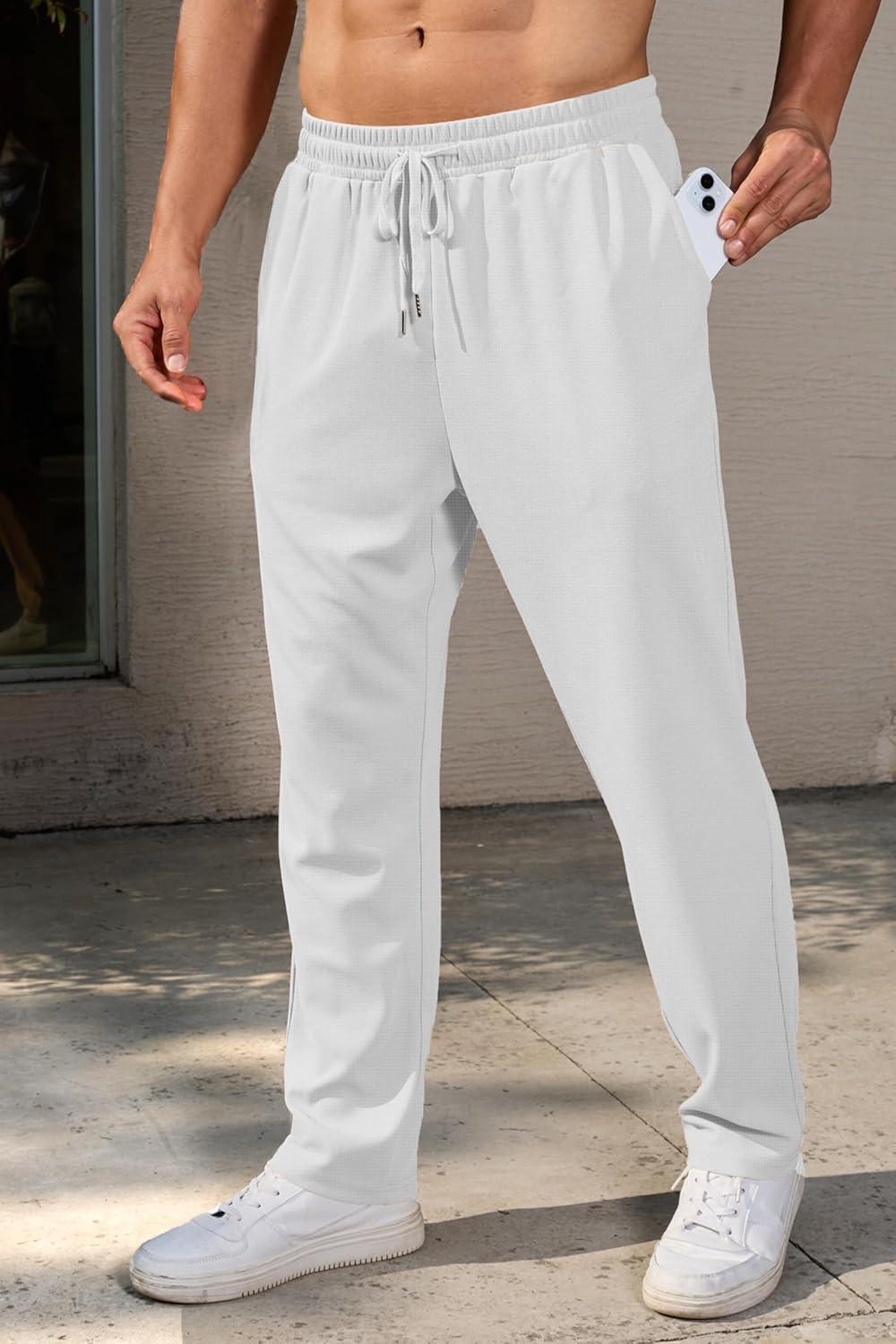 COOFANDY Men’s Casual Pants Waffle Knit Yoga Pants Lightweight Sweatpants Open Bottom Lounge Trousers(White)