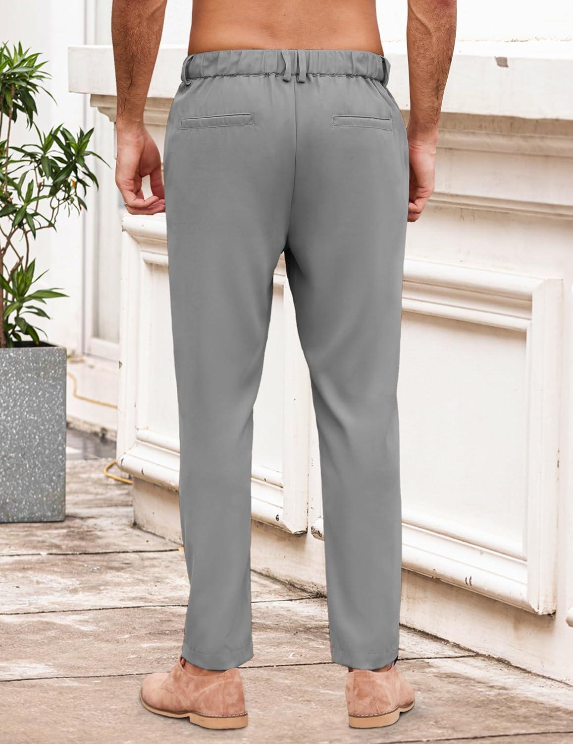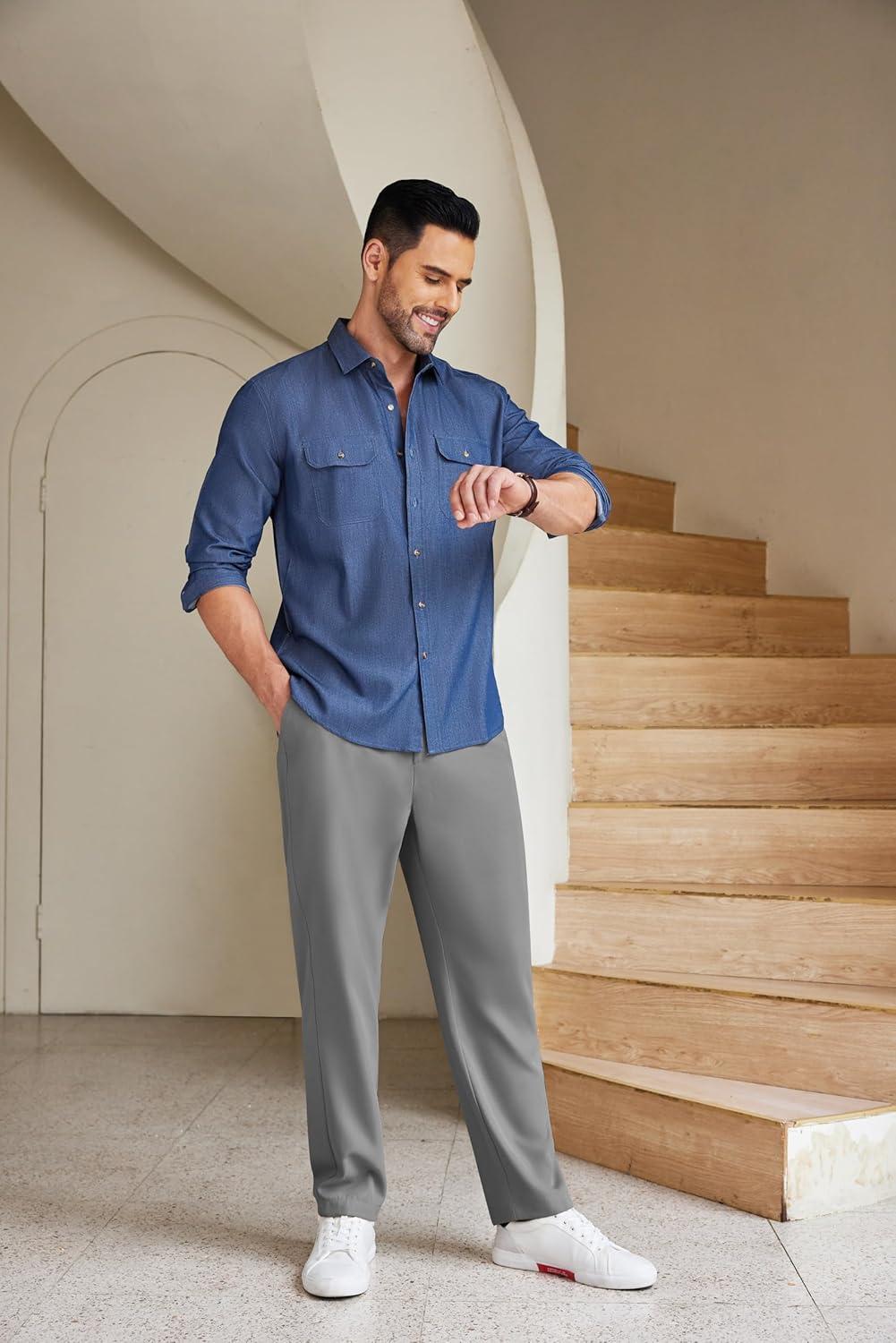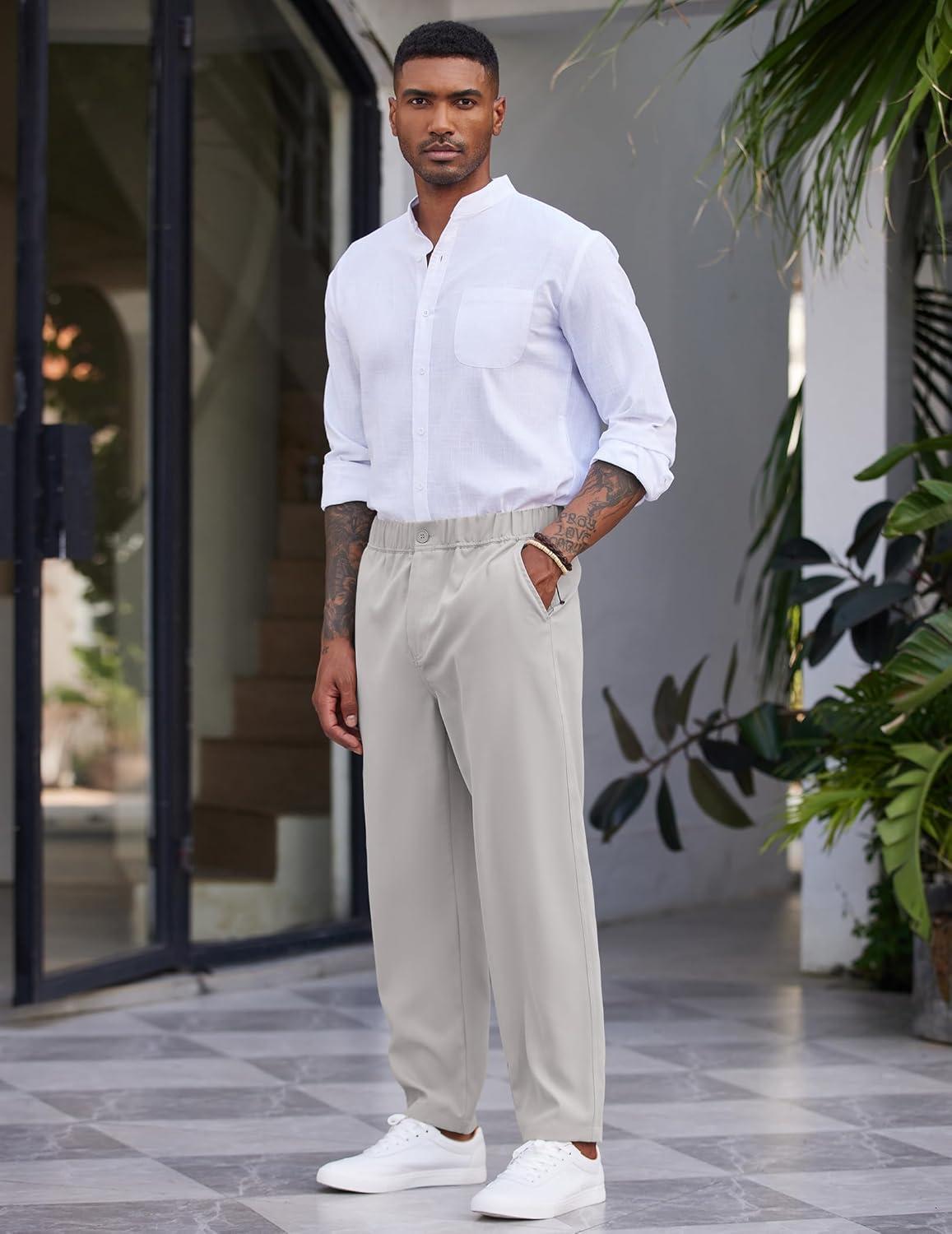 COOFANDY Men’s Casual Pants Relaxed Fit Flat Front Expandable Waist Chino Slack Trousers(Light Grey)