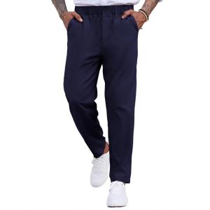 COOFANDY Men’s Casual Pants Relaxed Fit Flat Front Expandable Waist Chino Slack Trousers(Navy Blue)