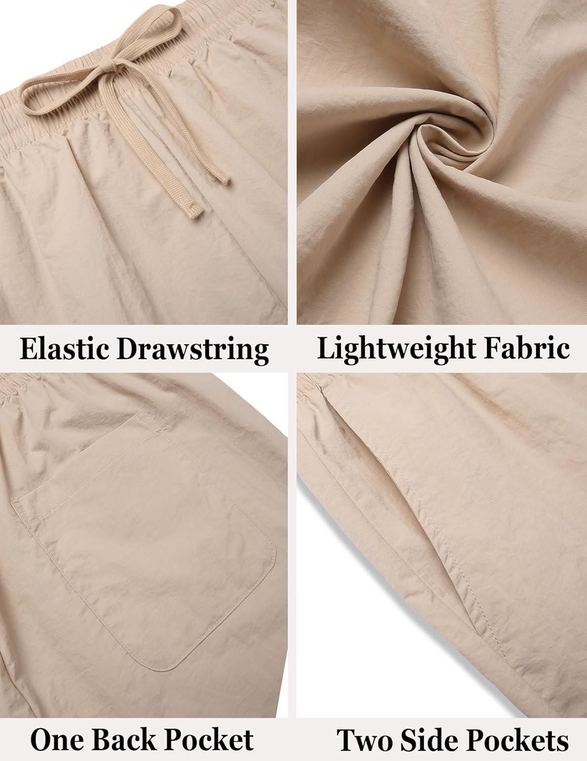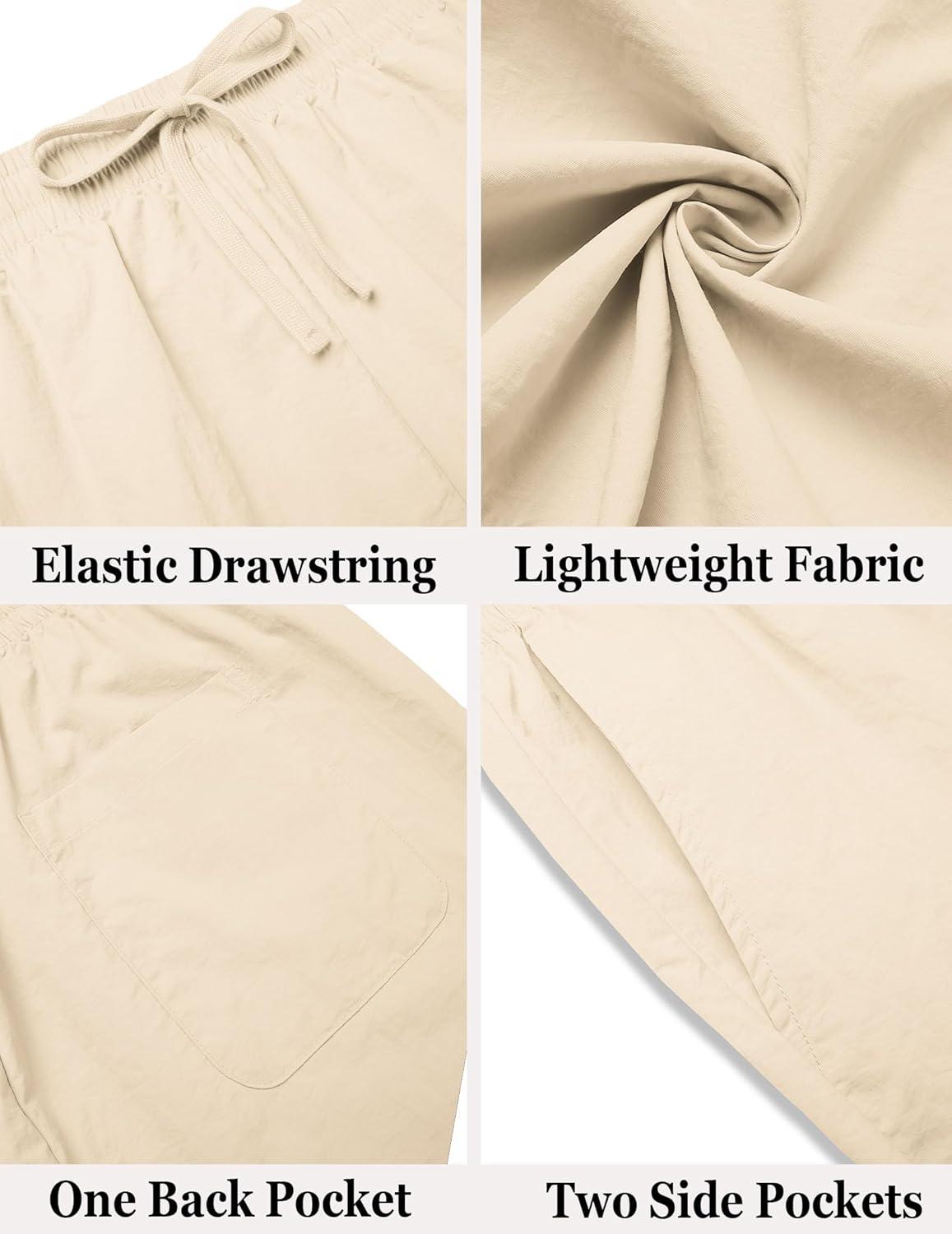 COOFANDY Men Casual Summer Beach Shorts Elastic Waist Drawstring Flat Front Short(Khaki)