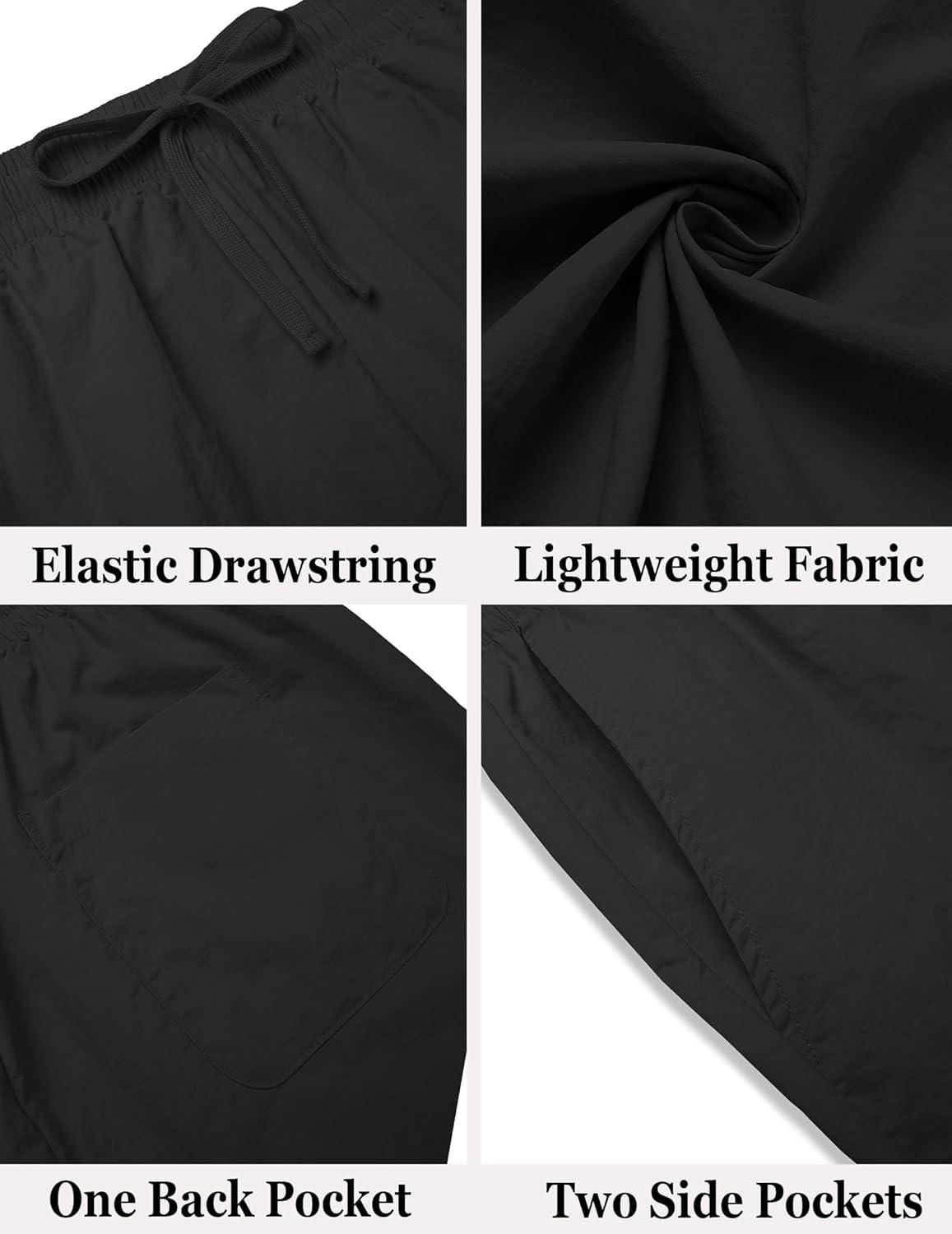 COOFANDY Casual Shorts for Men Lightweight Summer Beach Shorts Elastic Waist Quick Dry Shorts, Black, XXXL