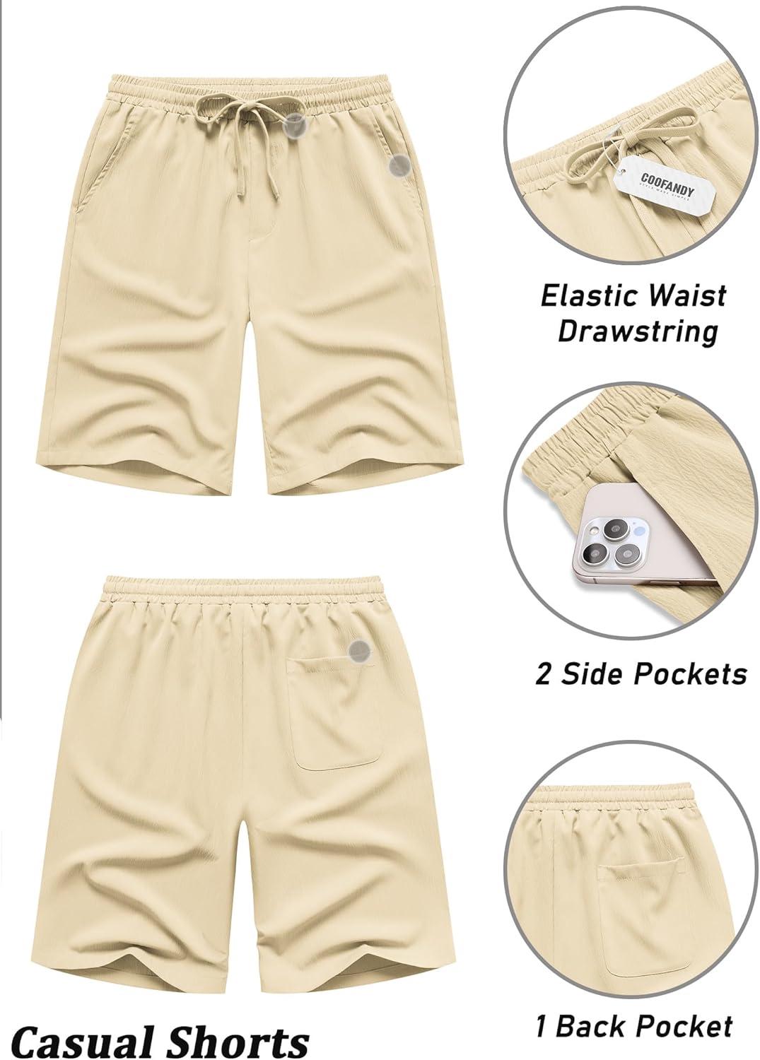 COOFANDY Mens Casual Shorts Elastic Waist Drawstring Shorts Summer Beach Linen Shorts(Beige)