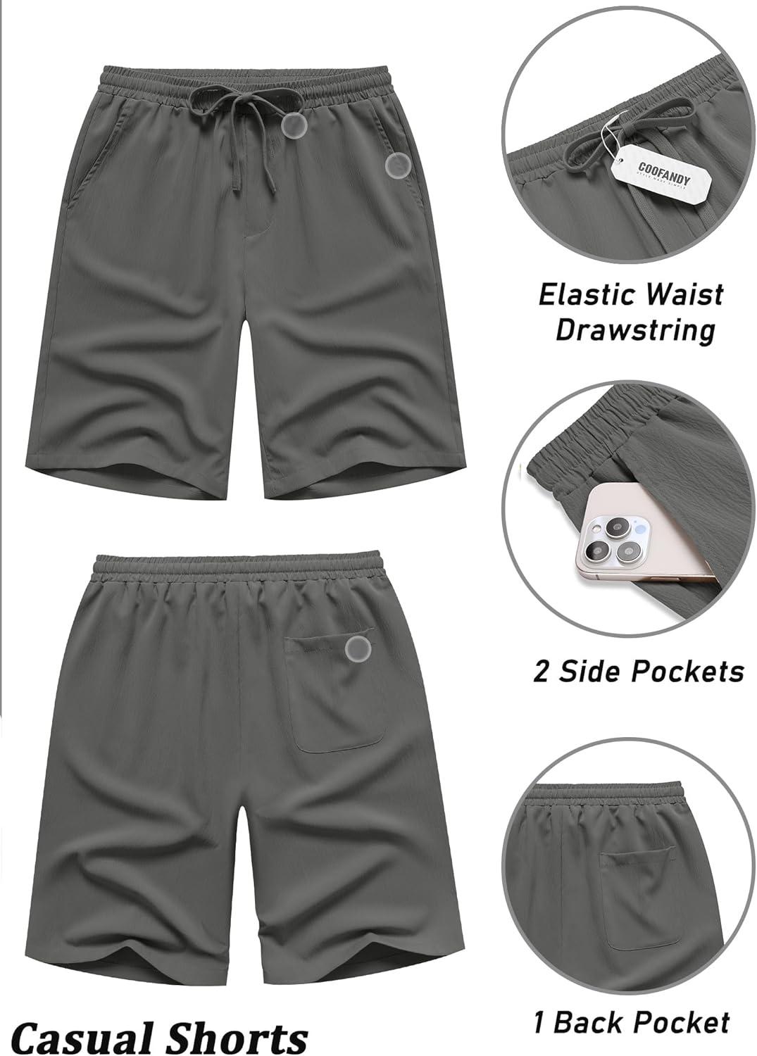 COOFANDY Mens Casual Shorts Elastic Waist Drawstring Shorts Lightweight Summer Beach Shorts(Dark Grey)