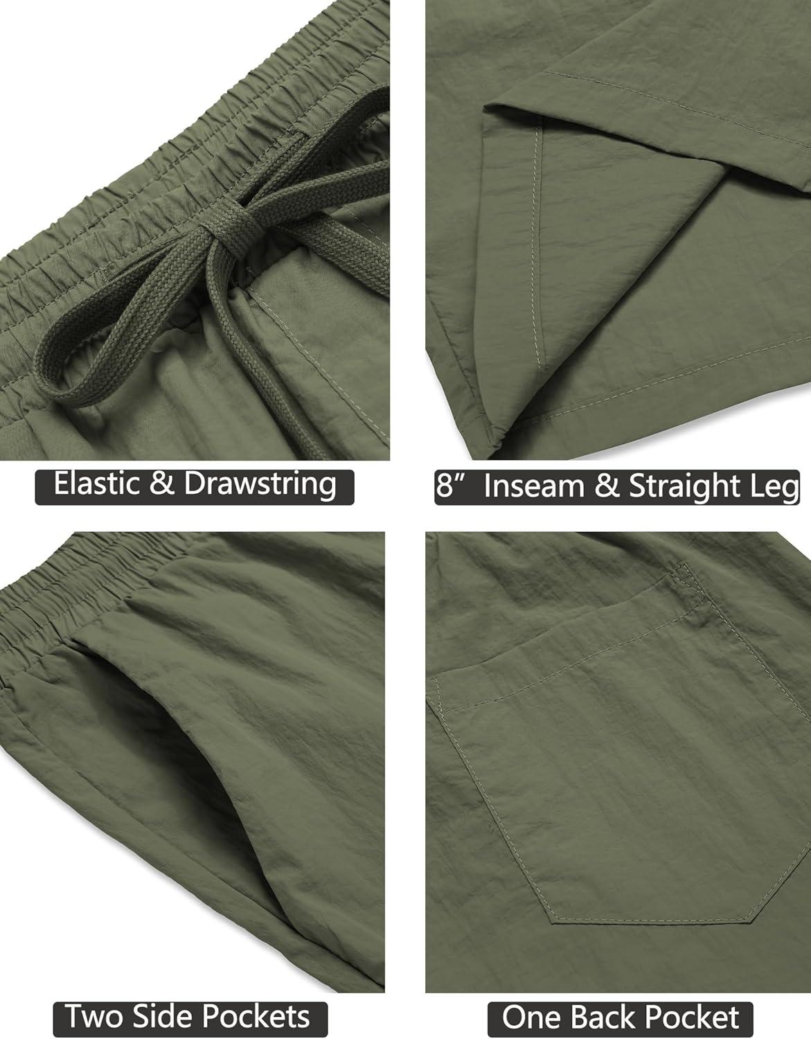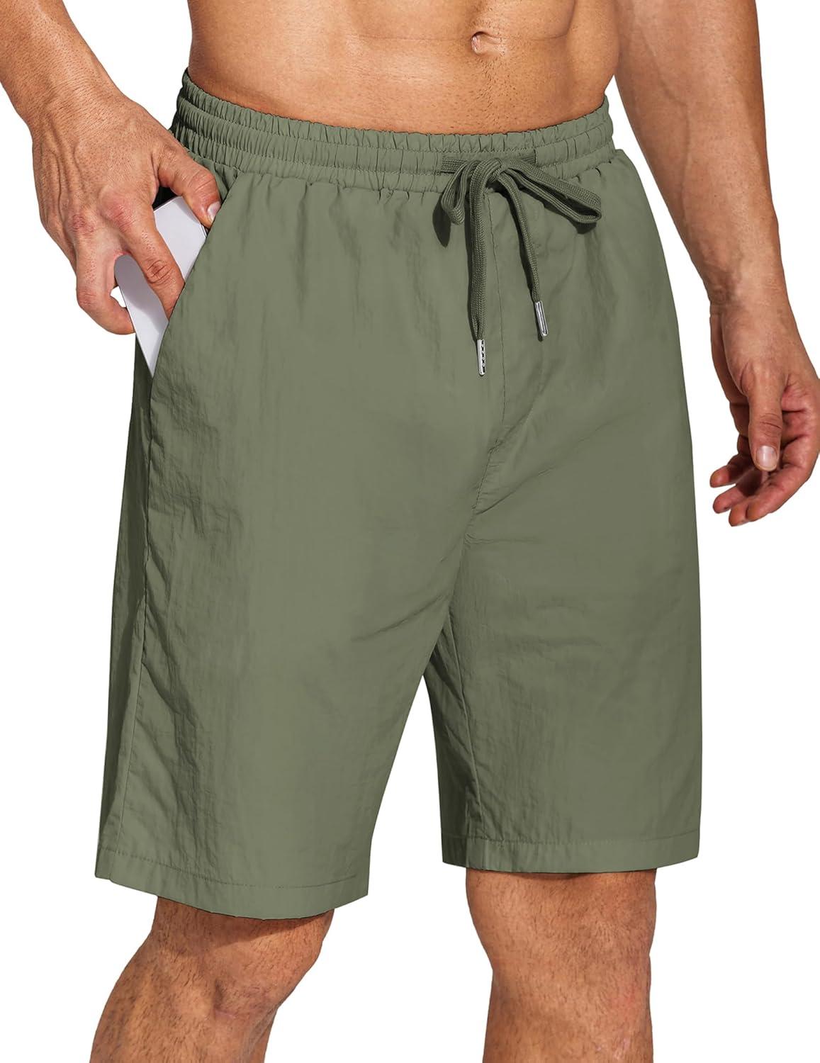COOFANDY Mens Casual Shorts Elastic Waist Drawstring Shorts Lightweight Summer Beach Shorts(Army Green)