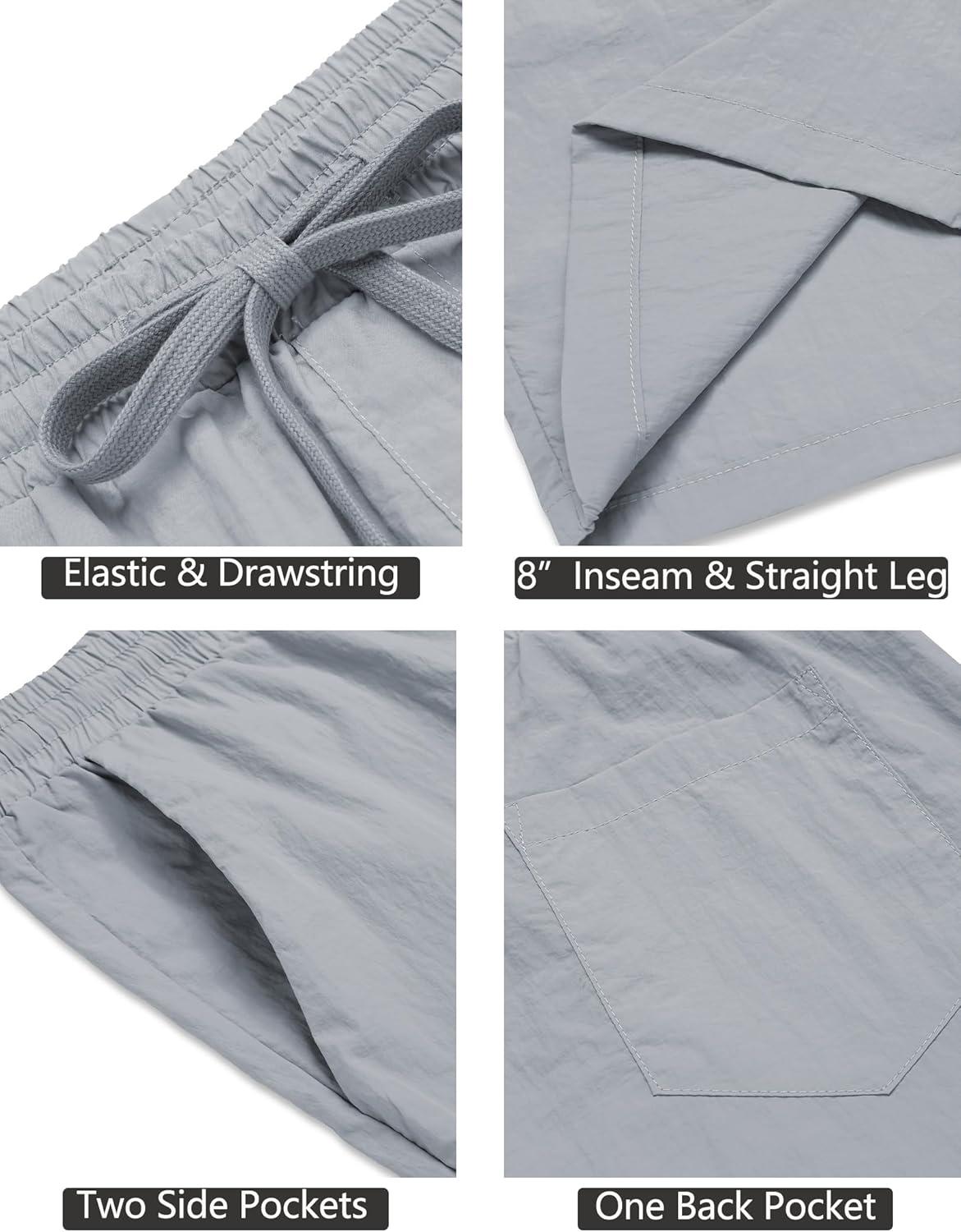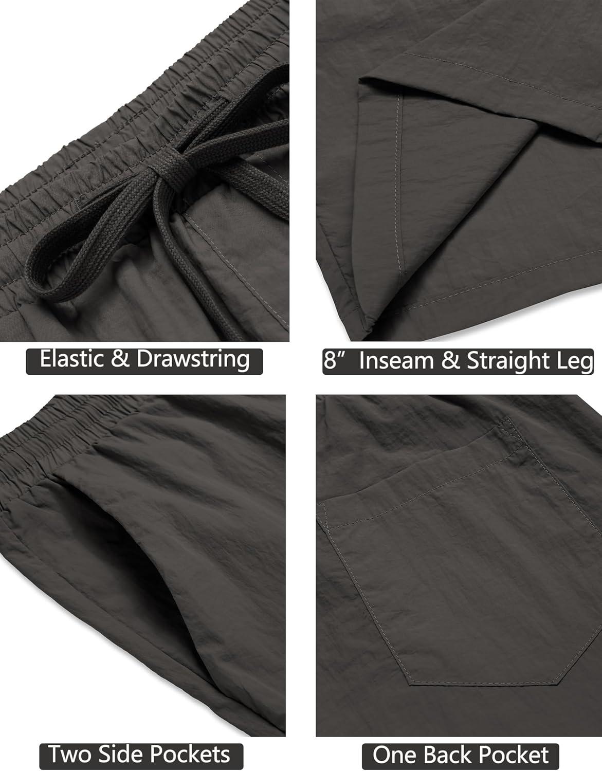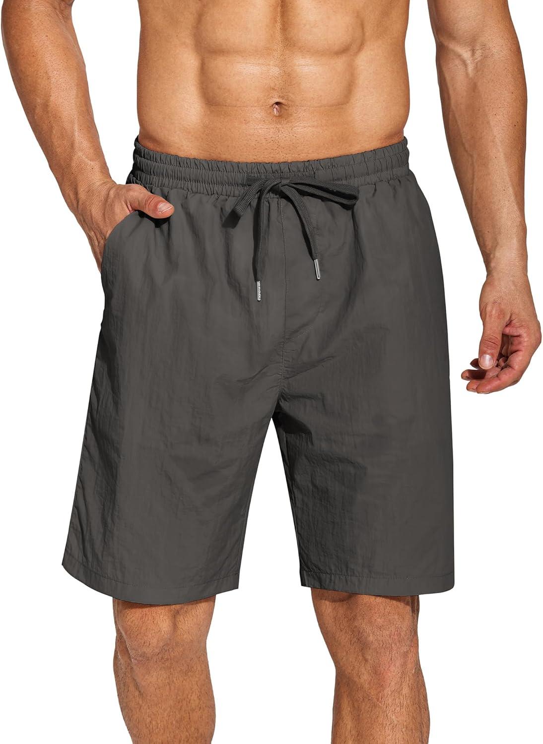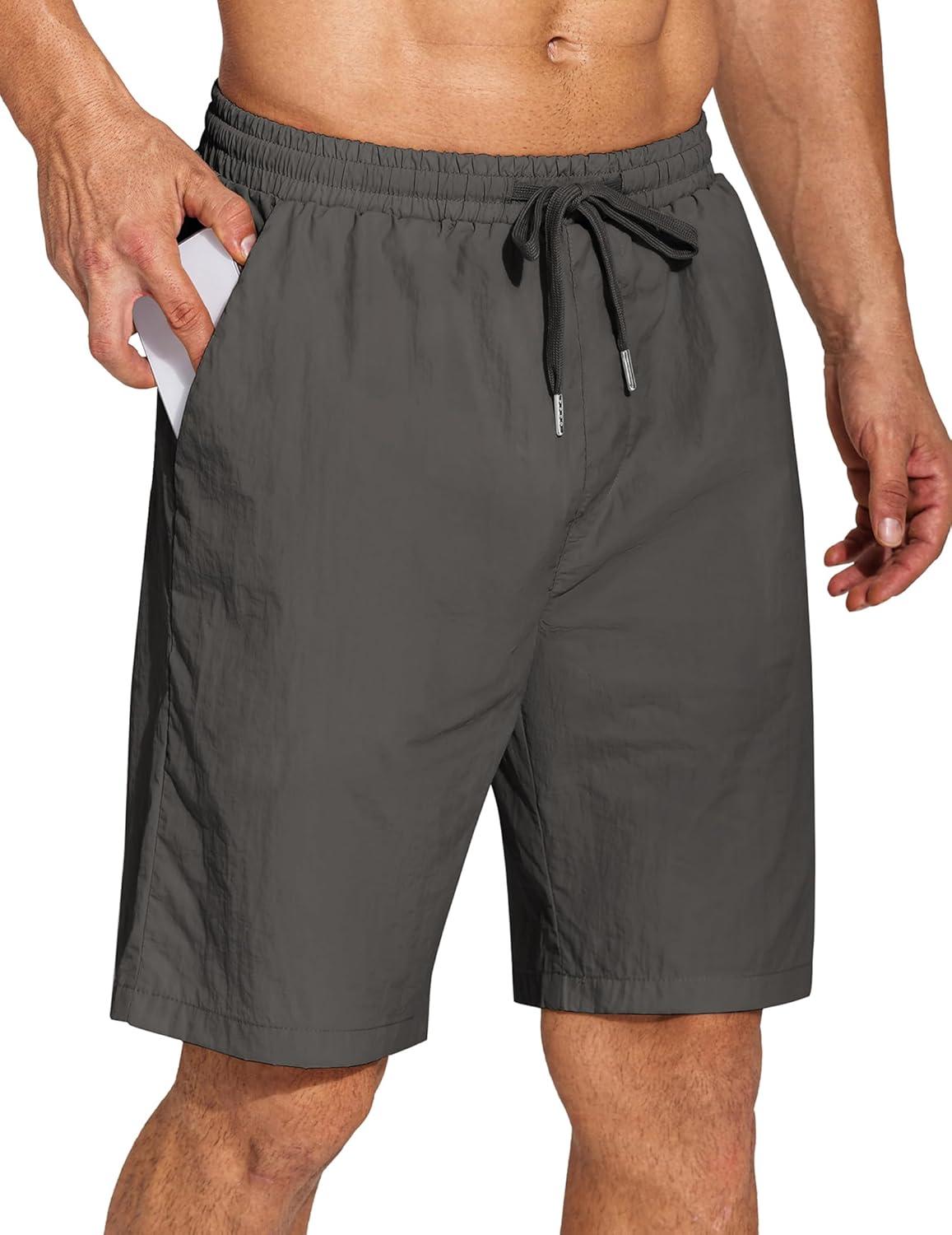 COOFANDY Men’s Summer Beach Shorts Lightweight Elastic Waist Drawstring Casual Shorts with Pocket(Deep Grey)