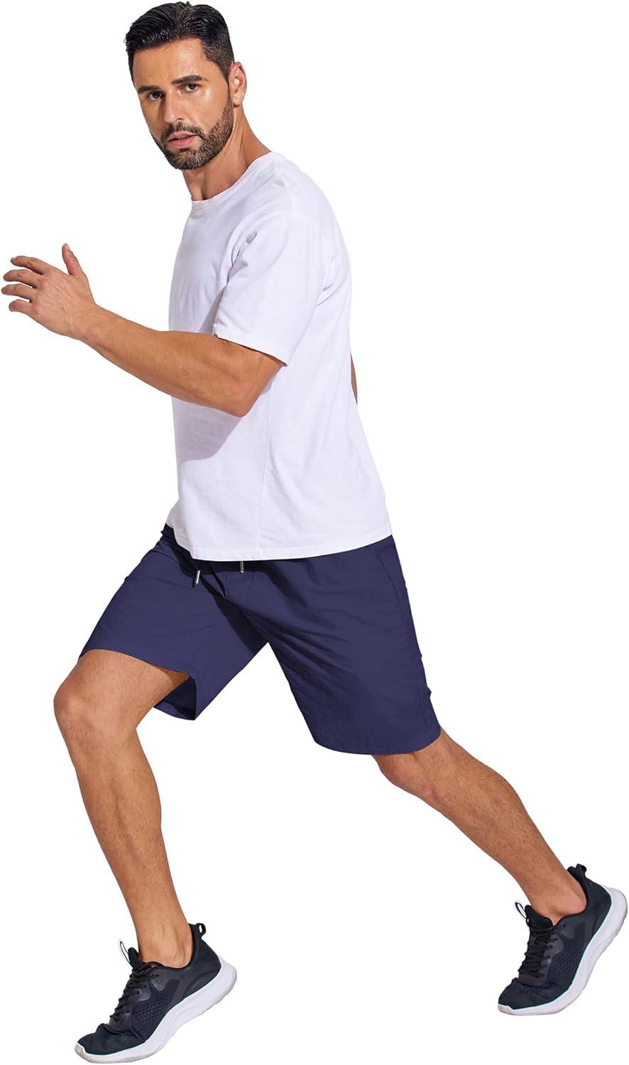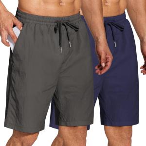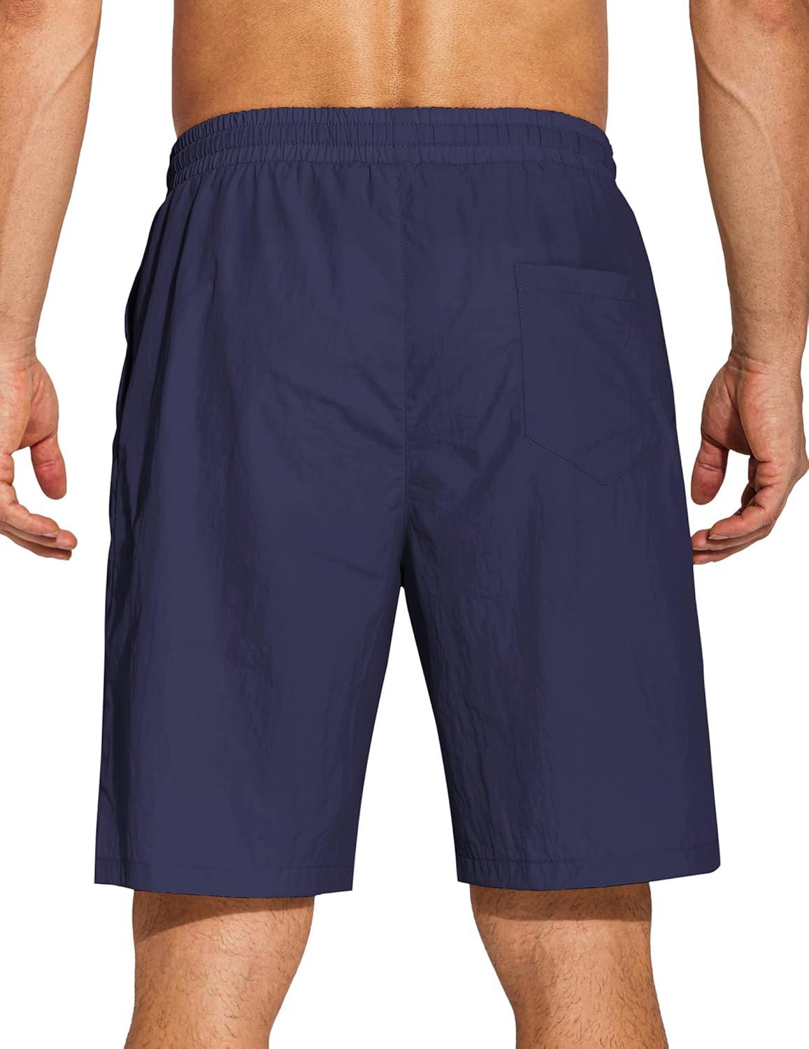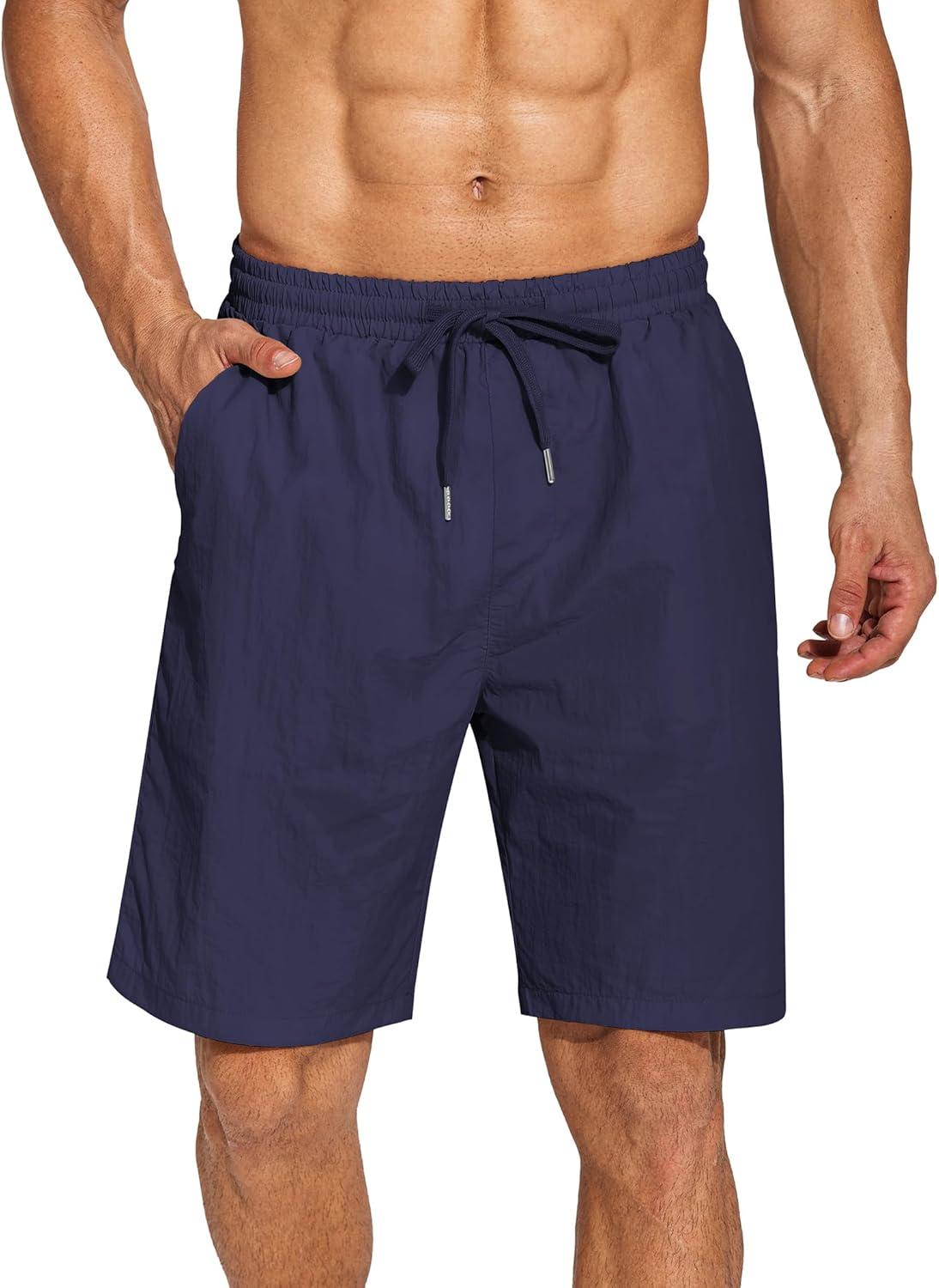 COOFANDY Men’s Summer Beach Shorts Lightweight Elastic Waist Drawstring Casual Shorts with Pocket(Dgrey/Navy)