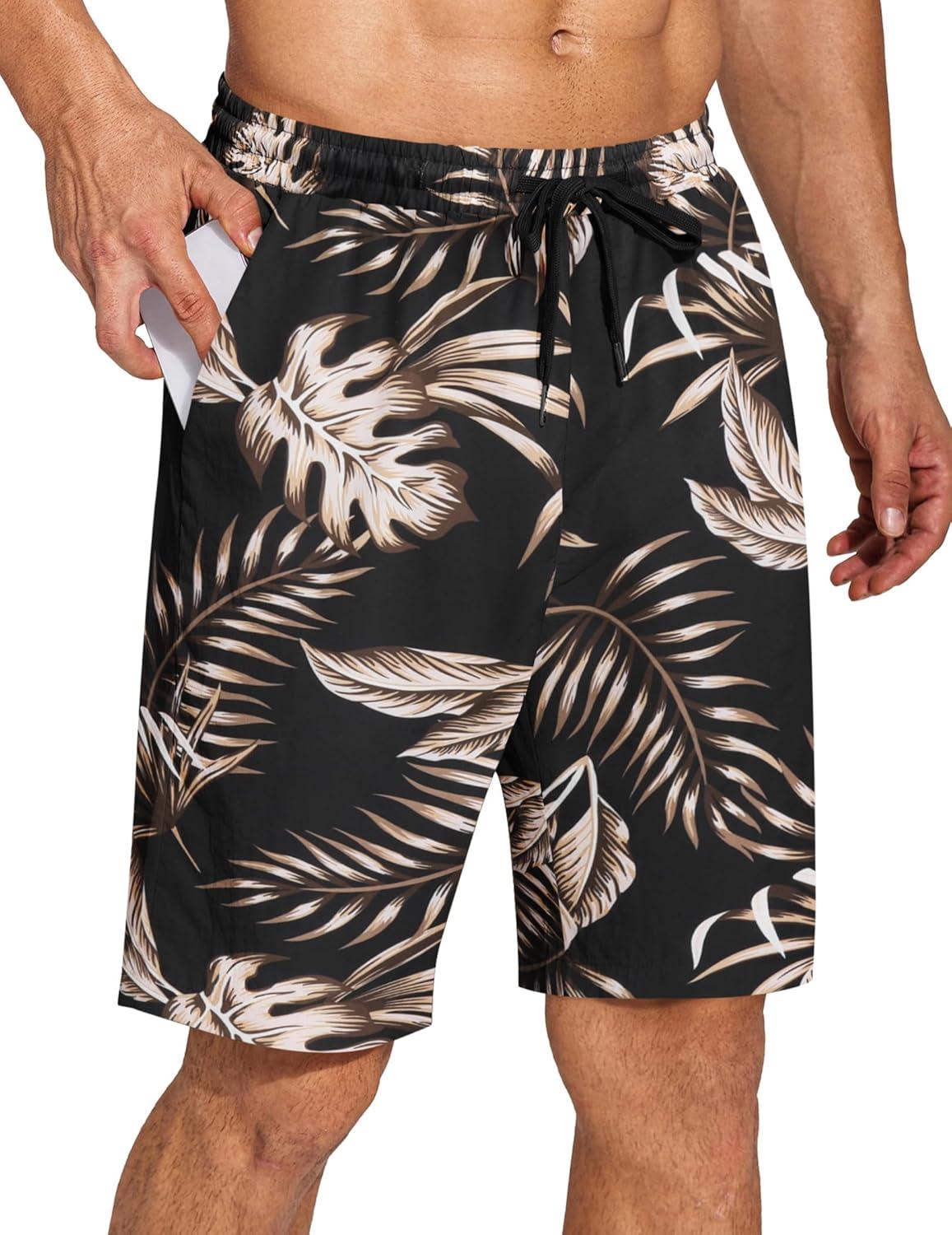 COOFANDY Men’s Summer Beach Shorts Lightweight Elastic Waist Drawstring Casual Shorts with Pocket(Pat1)