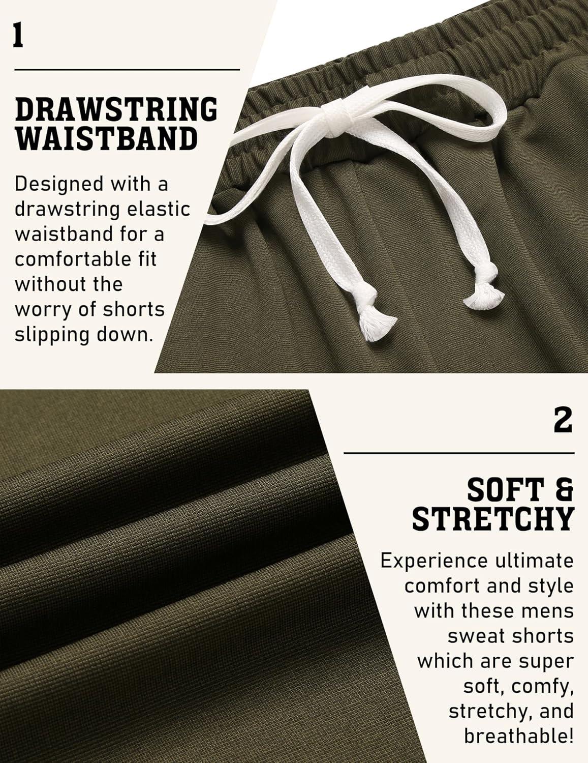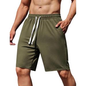 COOFANDY Men’s Sweat Shorts 9″ Drawstring Elastic Waist Gym Workout Shorts Casual Athletic Jogger Knit Shorts with Pockets(Army Green)