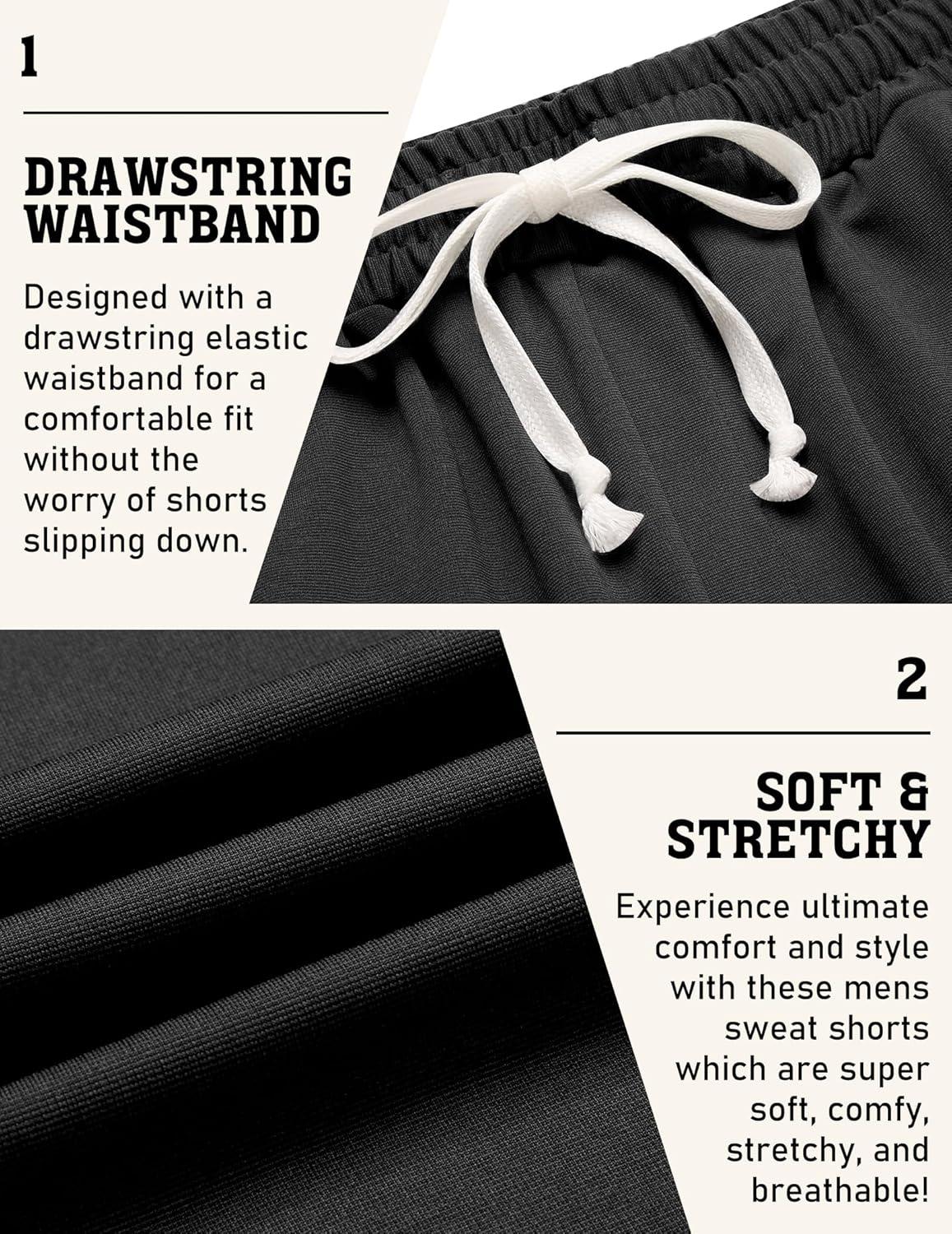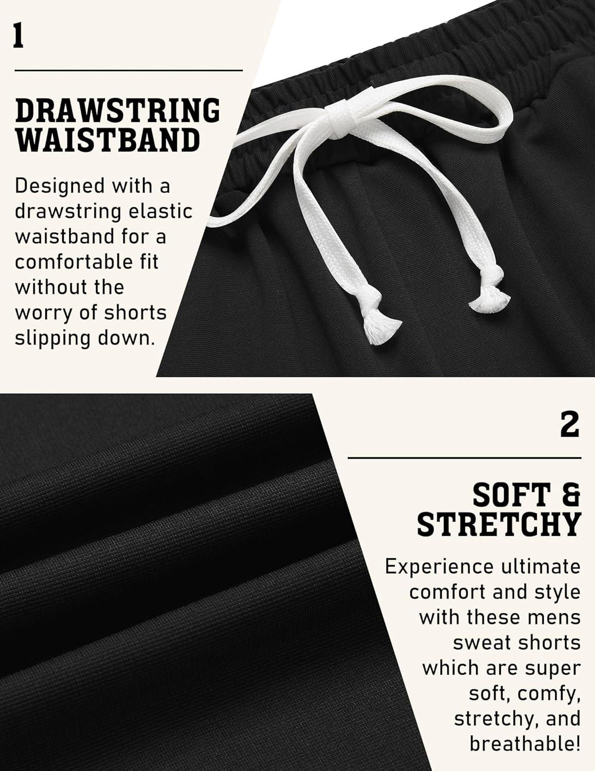COOFANDY Men’s Sweat Shorts 9″ Drawstring Elastic Waist Gym Workout Shorts Casual Athletic Jogger Knit Shorts with Pockets(Black)