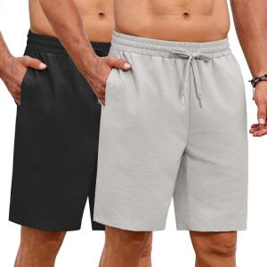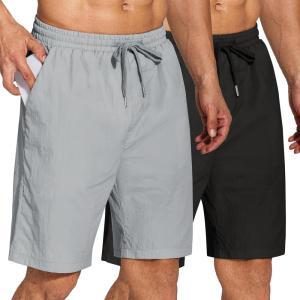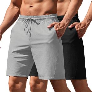 COOFANDY Men’s Summer Beach Shorts Lightweight Elastic Waist Drawstring Casual Shorts with Pocket(Black/Grey)