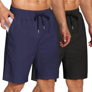 COOFANDY Men’s Summer Beach Shorts Lightweight Elastic Waist Drawstring Casual Shorts with Pocket(Black/Navy)