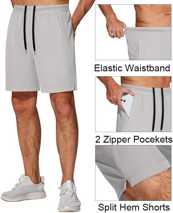 COOFANDY Mens Athletic Running Shorts 7” Gym Workout Shorts Lightweight Drawstring Training Shorts with Zipper Pockets(01_blak/Light Grey)