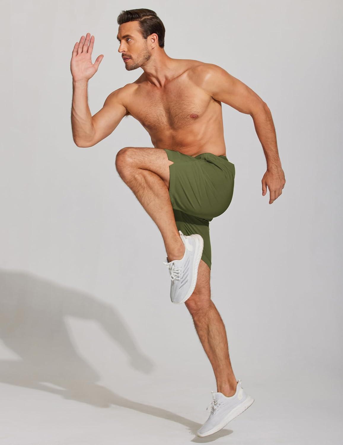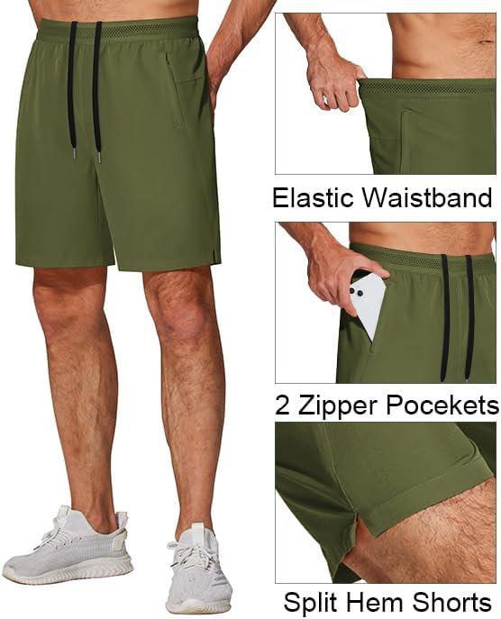 COOFANDY Mens Athletic Running Shorts 7” Gym Workout Shorts Lightweight Drawstring Training Shorts with Zipper Pockets(Blak/Army Green)