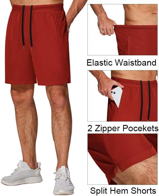 COOFANDY Mens Athletic Running Shorts 7” Gym Workout Shorts Lightweight Drawstring Training Shorts with Zipper Pockets(Blak/Wine Red)