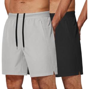 COOFANDY Mens Athletic Running Shorts 7” Gym Workout Shorts Lightweight Drawstring Training Shorts with Zipper Pockets(2 Pack: Black/Light Grey)