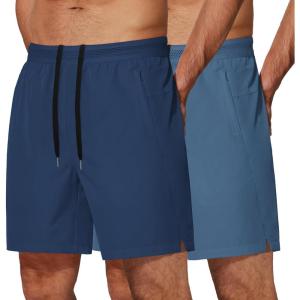 COOFANDY Mens Athletic Running Shorts 7” Gym Workout Shorts Lightweight Drawstring Training Shorts with Zipper Pockets(Blue/Navy Blue)