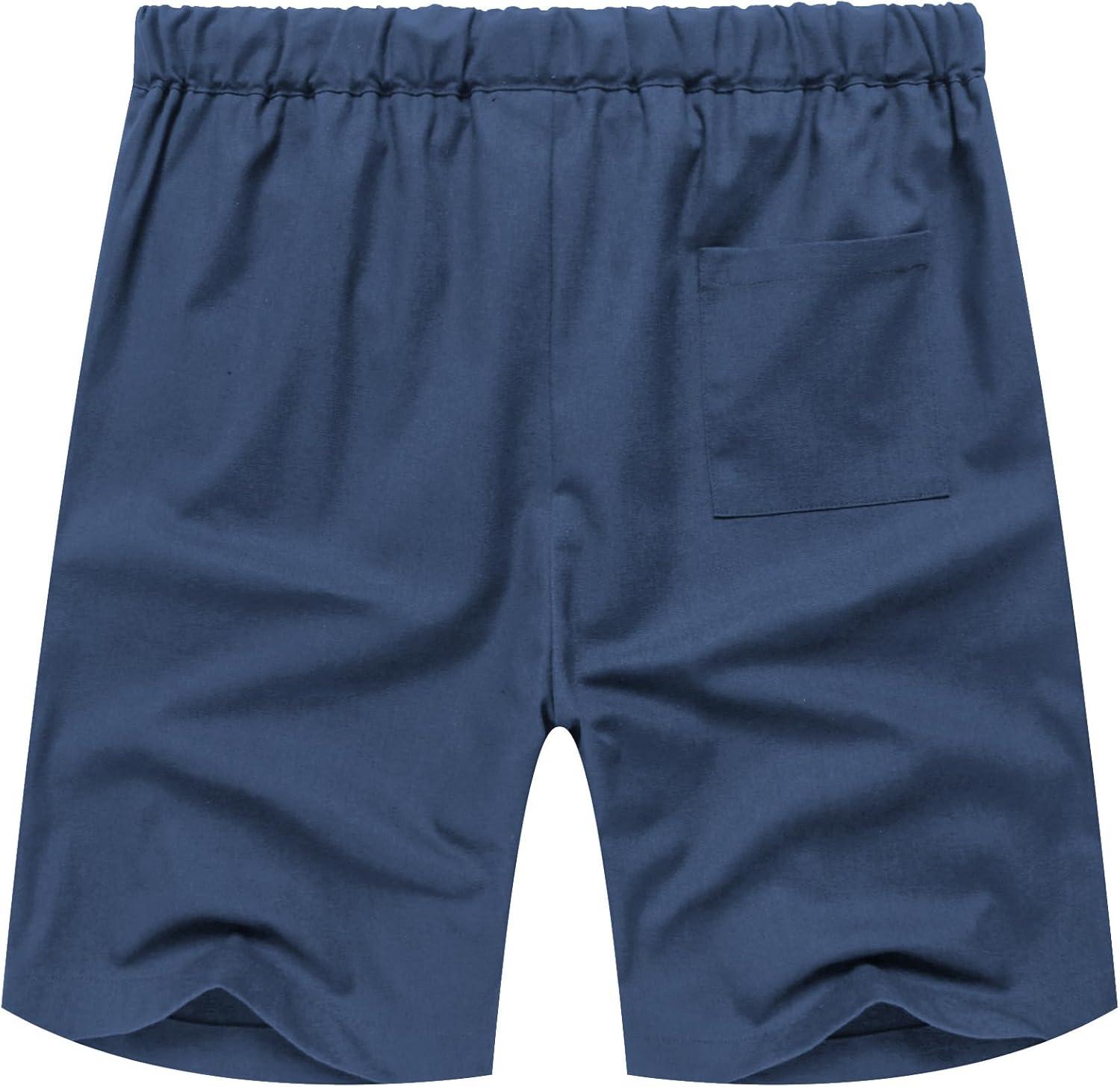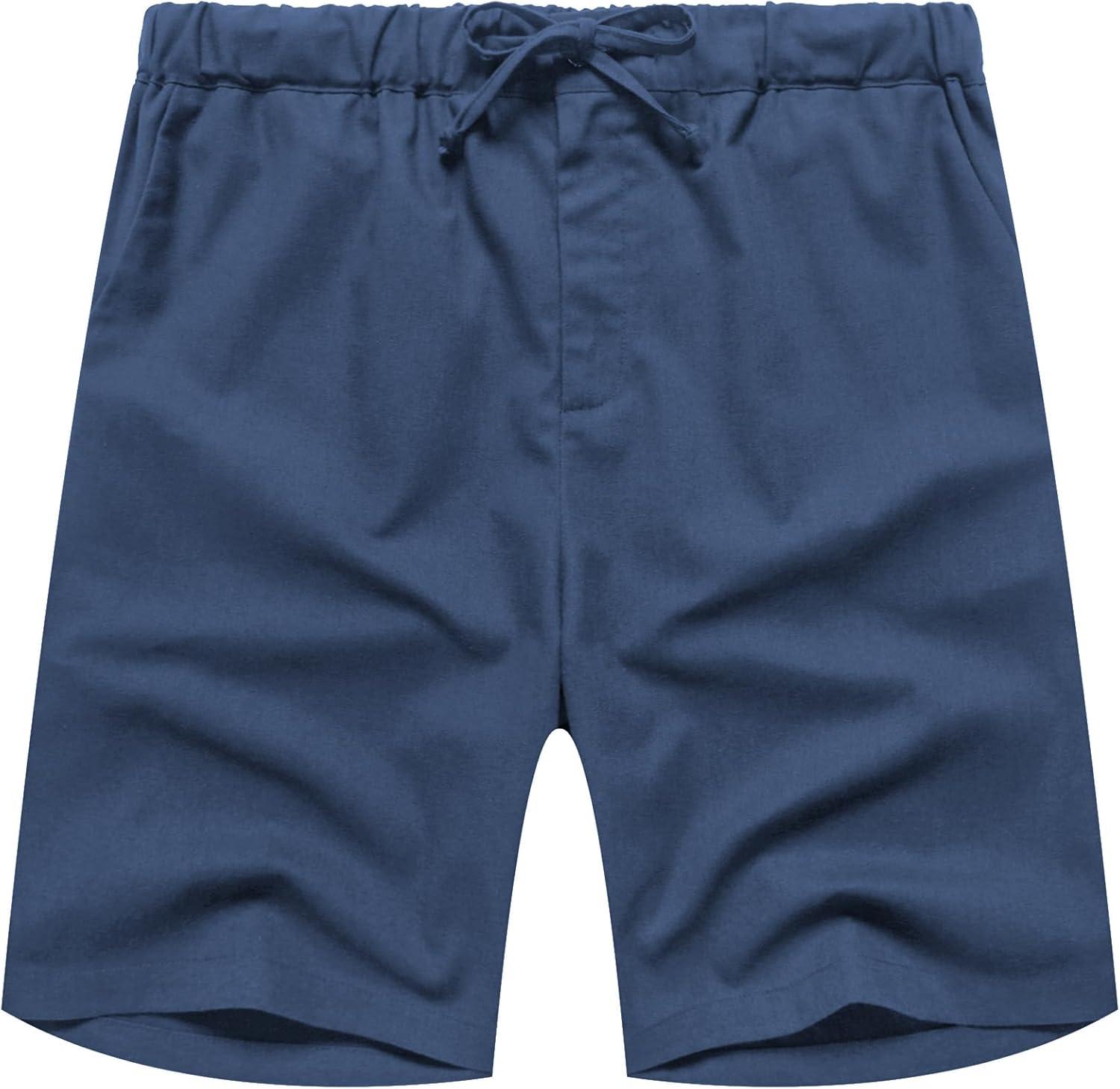 COOFANDY Men’s Linen Short Elastic Waist Drawstring Casual Summer Beach Shorts(Denim Blue)