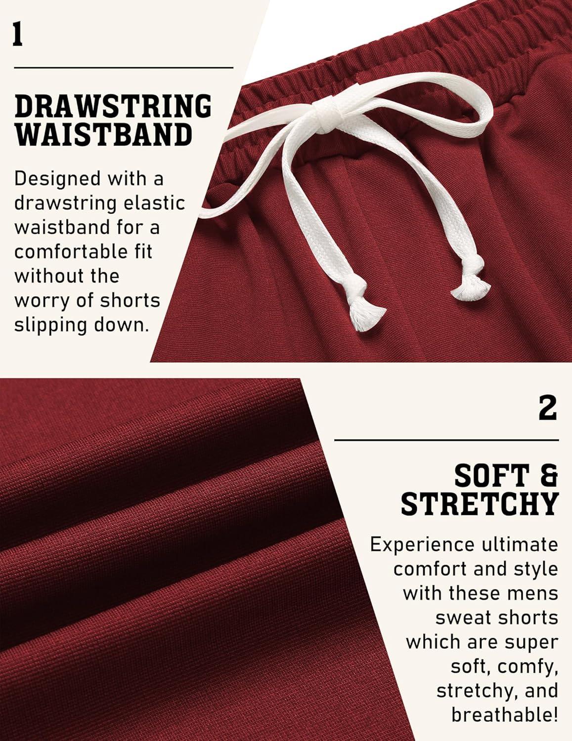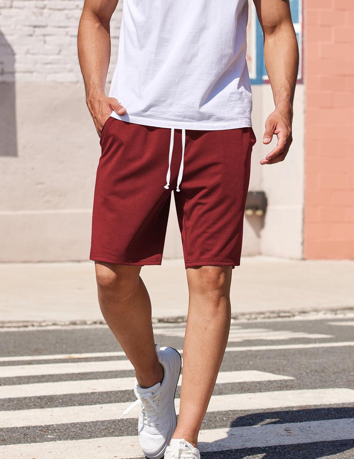 COOFANDY Men’s Sweat Shorts 9″ Drawstring Elastic Waist Gym Workout Shorts Casual Athletic Jogger Knit Shorts with Pockets(Wine Red)