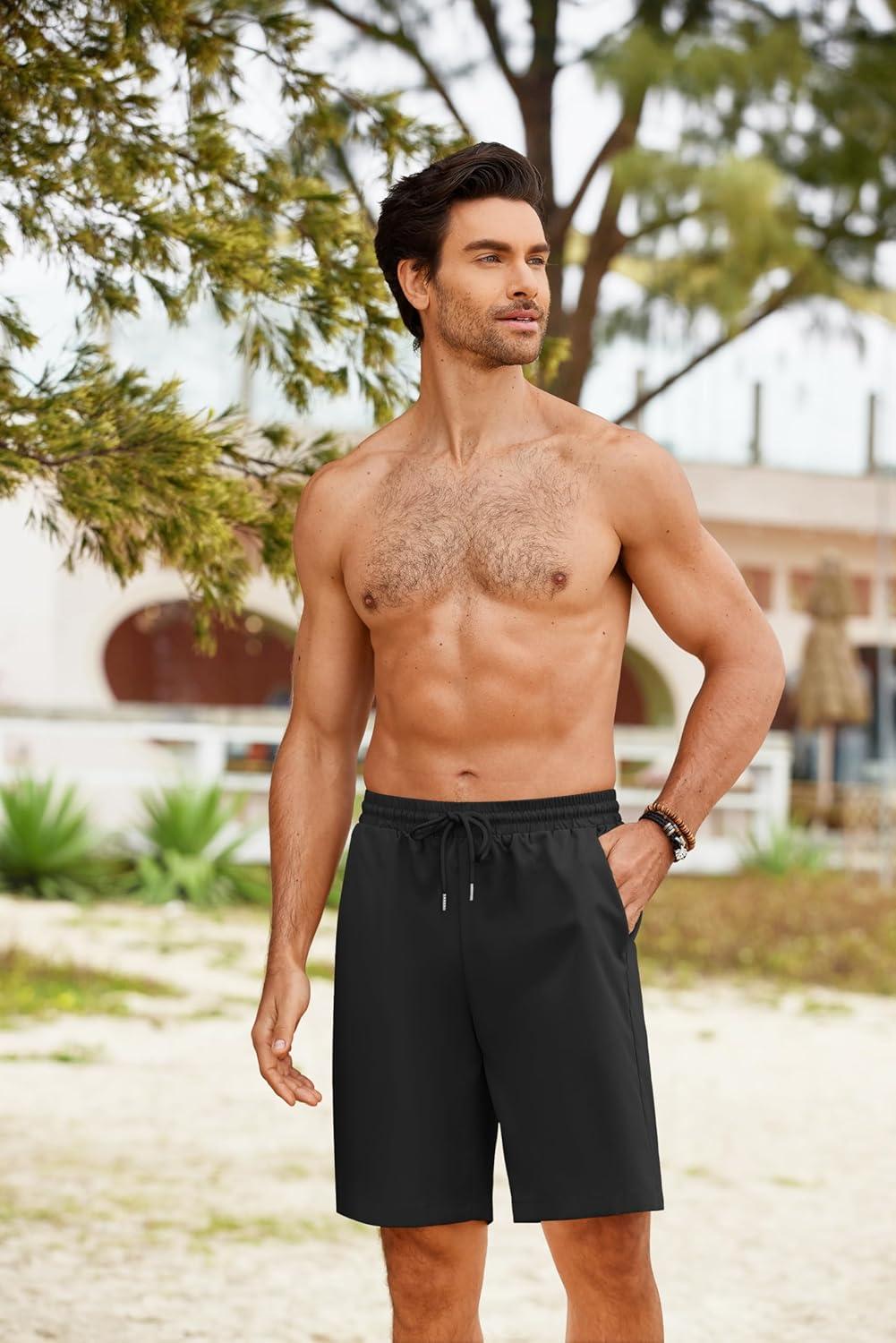 COOFANDY Men’s Swim Trunks Board Shorts Summer Beach Shorts Swimsuit Swimwear for Men – No Liner(Black)