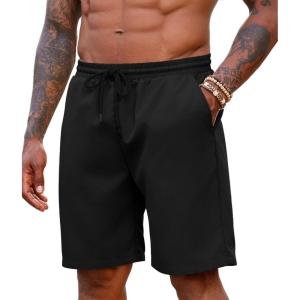 COOFANDY Men’s Linen Short Elastic Waist Drawstring Casual Summer Beach Shorts(Linen Khaki/Dark Khaki)