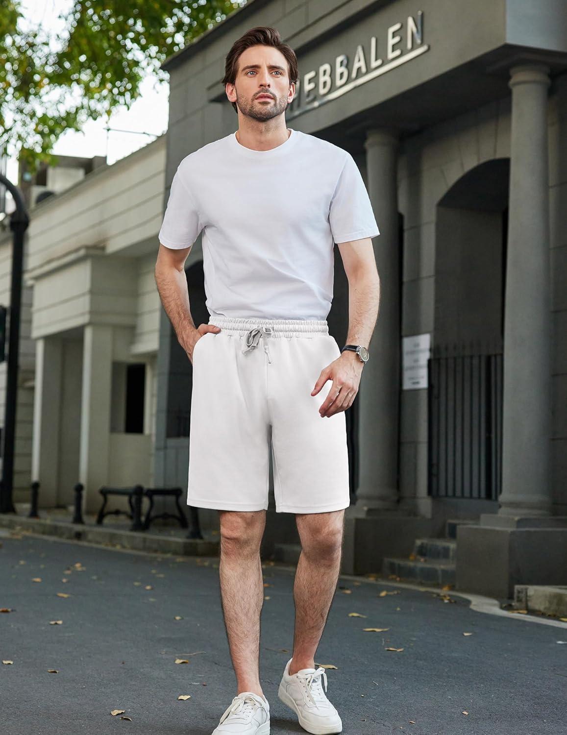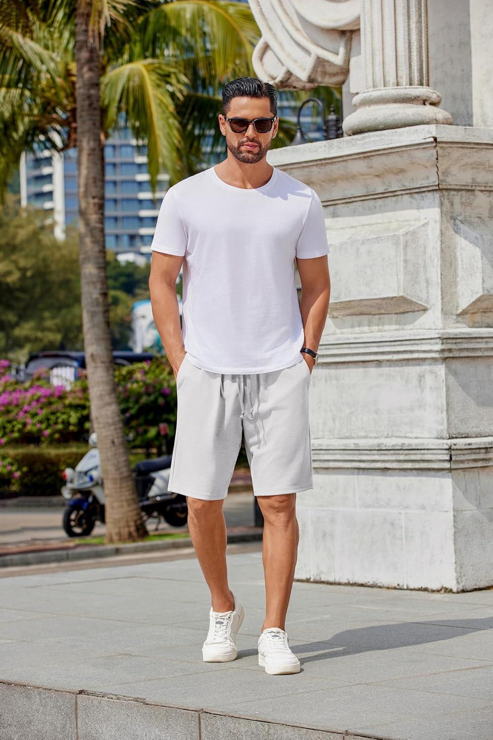 COOFANDY Mens Casual Shorts Stretch Drawstring Summer Beach Shorts Chino Golf Shorts with Pockets(White)