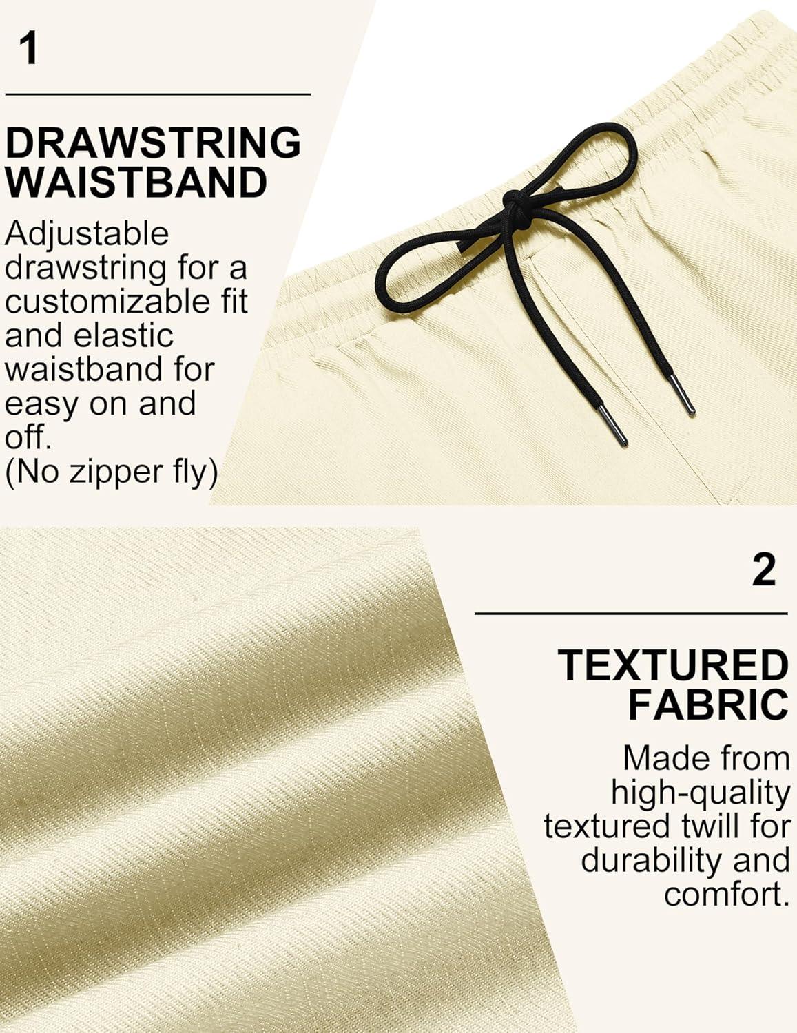 COOFANDY Men’s Casual Shorts Lightweight Elastic Waist Drawstring Summer Beach Shorts with Pockets(Light Khaki)