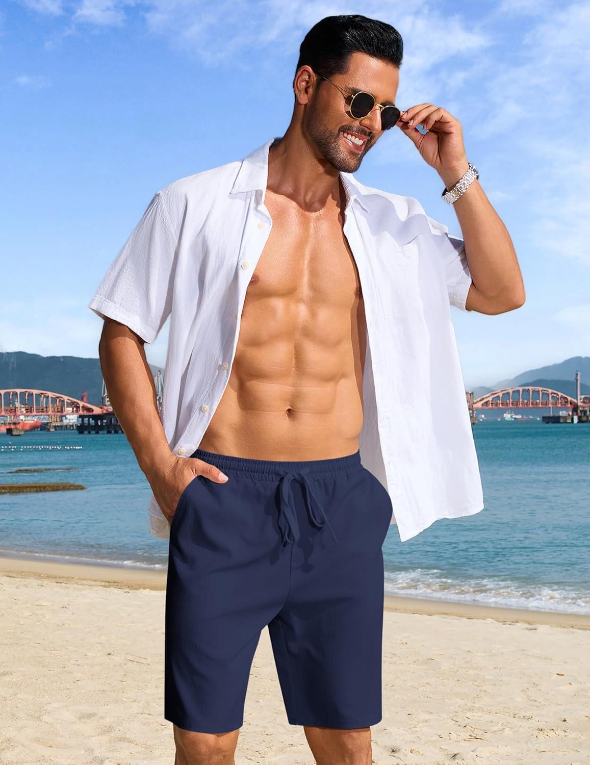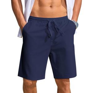 COOFANDY Men’s Casual Shorts Lightweight Elastic Waist Drawstring Summer Beach Shorts with Pockets(Navy Blue&lily)
