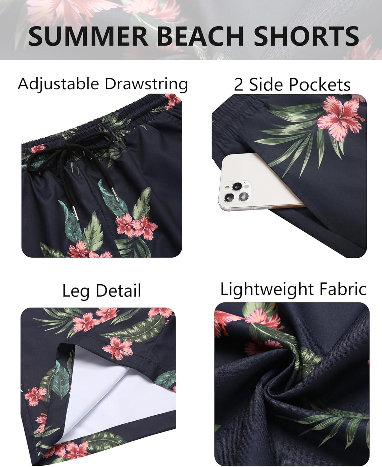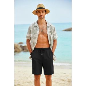 COOFANDY Men’s Hawaiian Beach Shorts Elastic Waist Drawstring Lightweight Summer Casual Shorts with Pocket(Black)