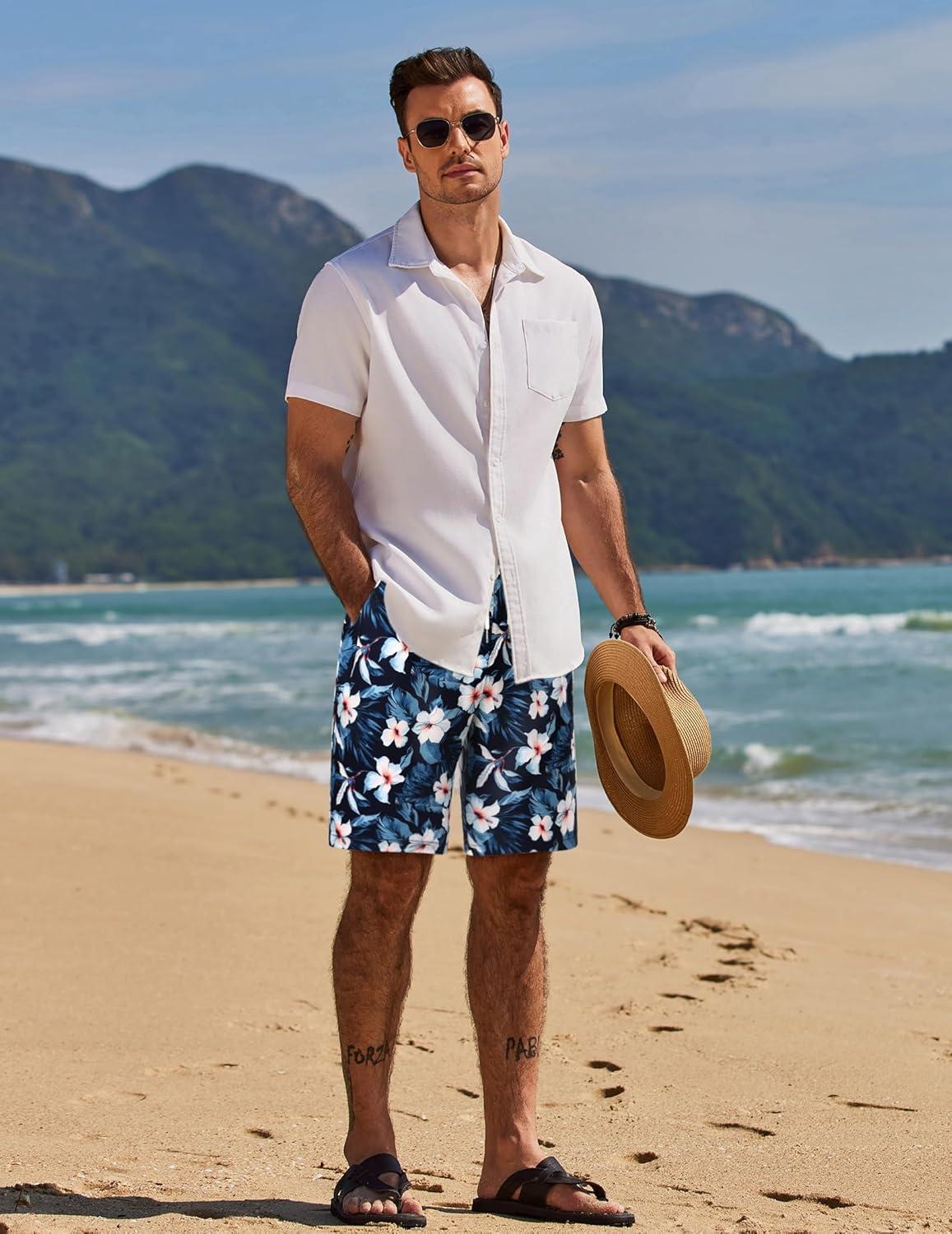 COOFANDY Men’s Hawaiian Beach Shorts Elastic Waist Drawstring Lightweight Summer Casual Shorts with Pocket(Blue)