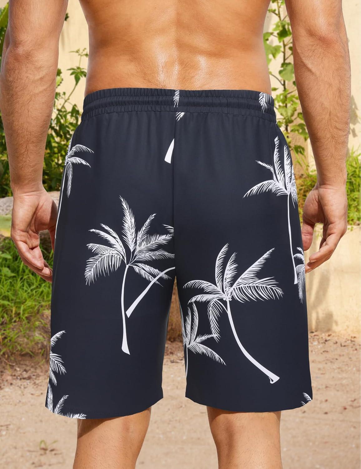 COOFANDY Men’s Casual Shorts Lightweight Elastic Waist Drawstring Summer Beach Shorts with Pockets(Navy Blue&white Coconut Tree)