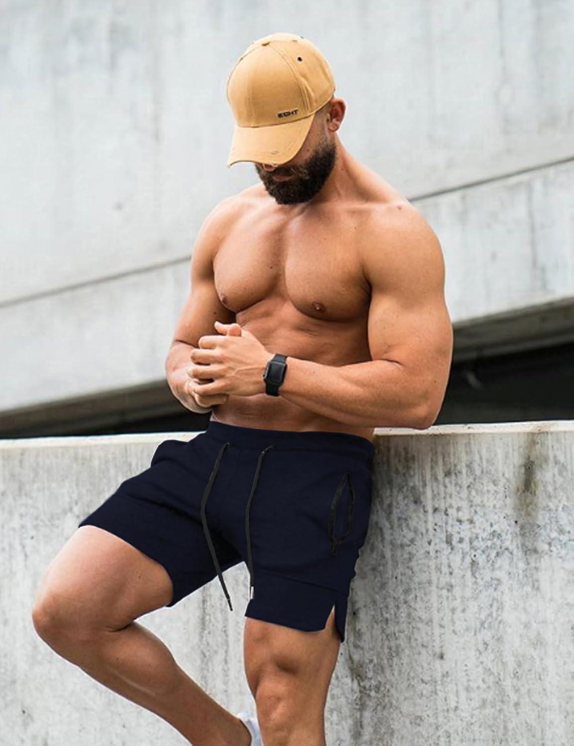 COOFANDY Men’s Gym Workout Shorts Athletic Training Shorts Fitted Weightlifting Bodybuilding Shorts with Zipper Pockets(Navy Blue)