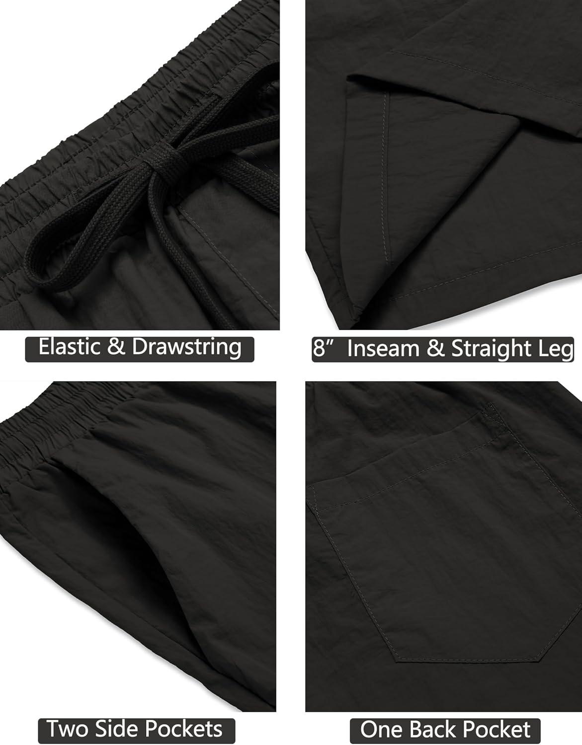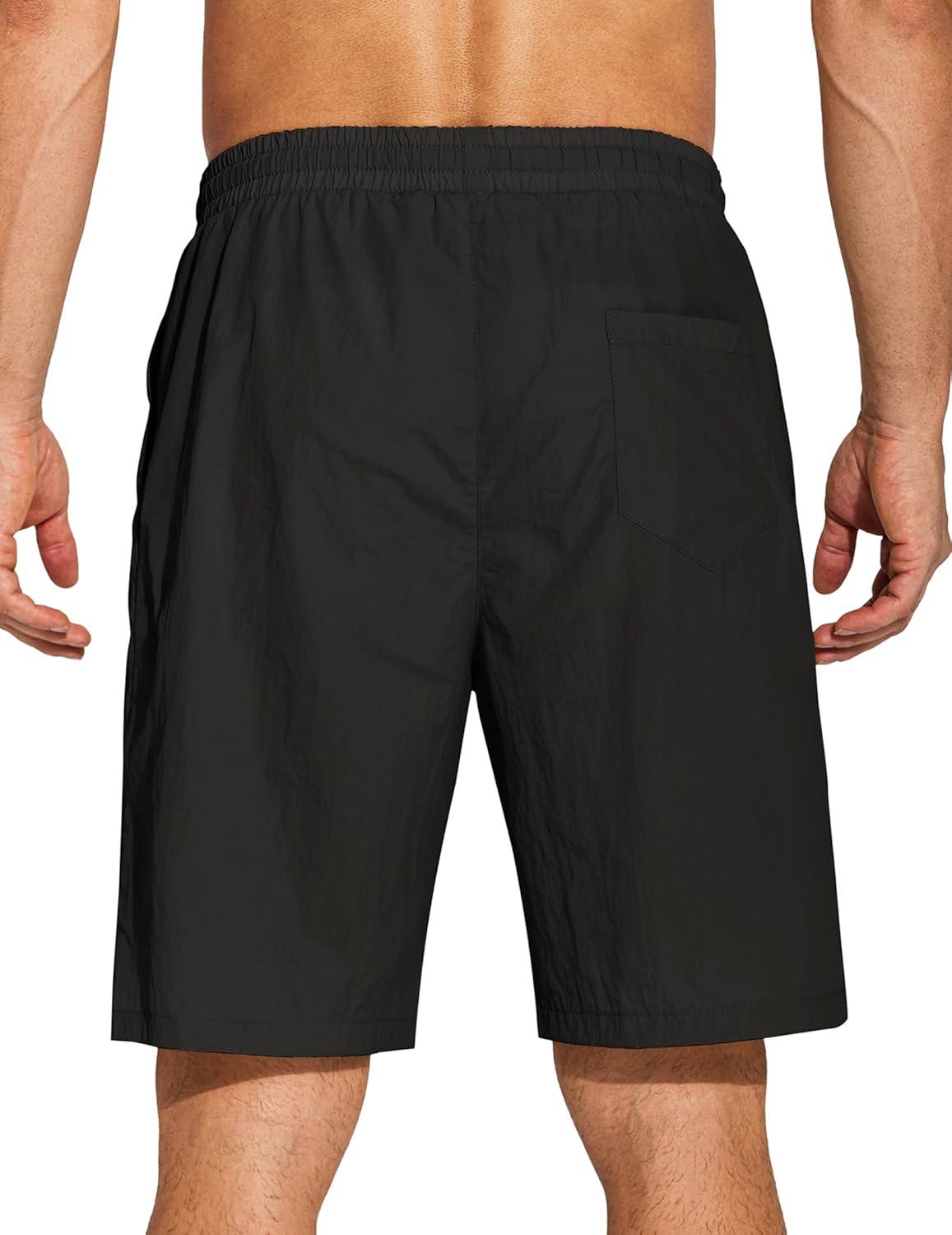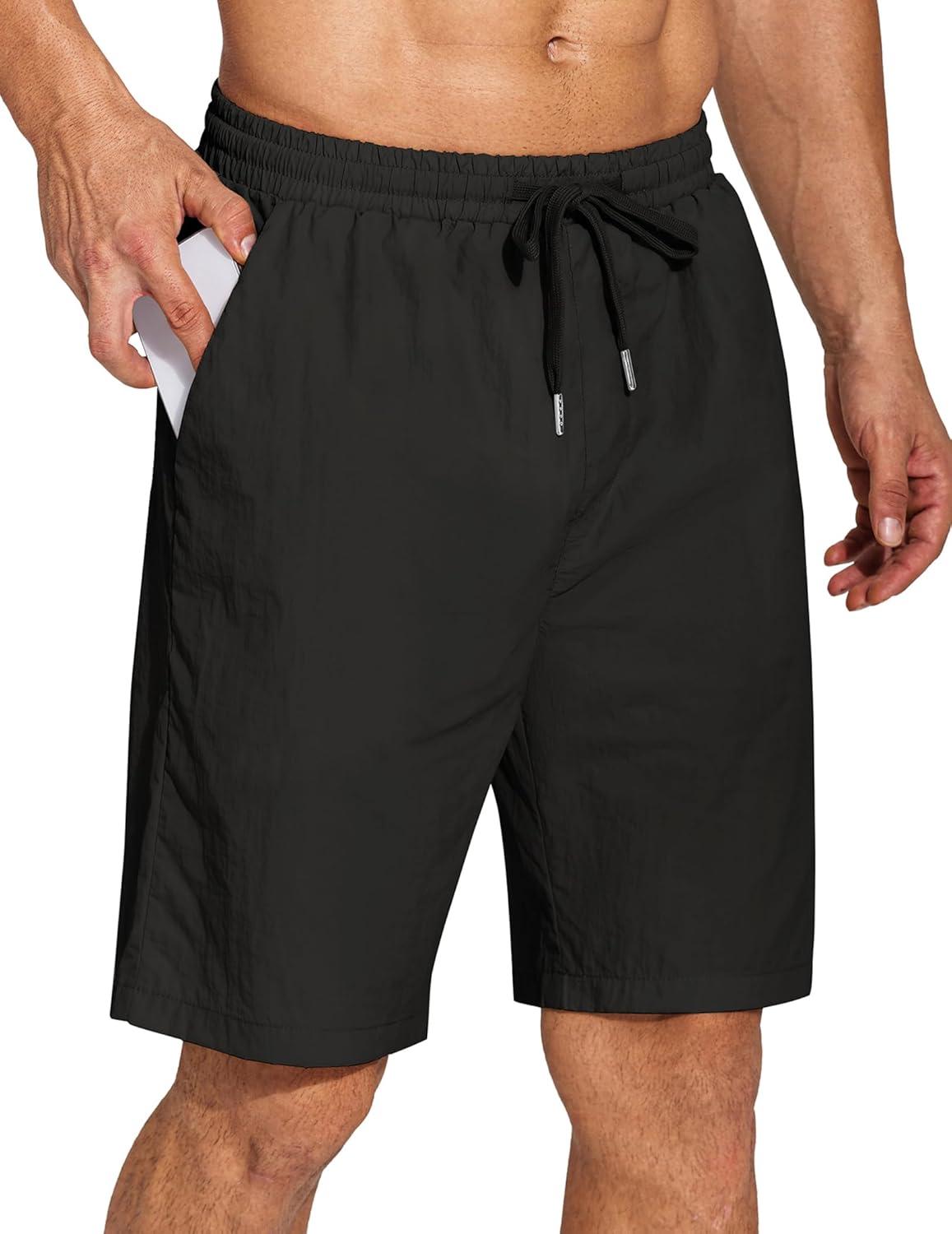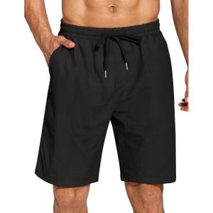 COOFANDY Men’s Summer Beach Shorts Lightweight Elastic Waist Drawstring Casual Shorts with Pocket(Black)