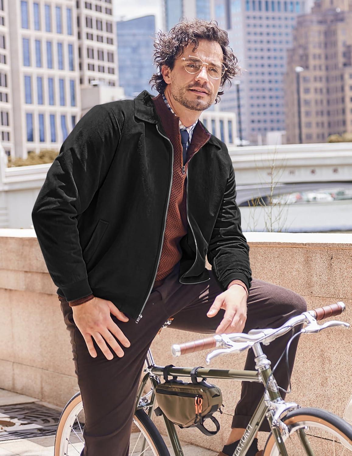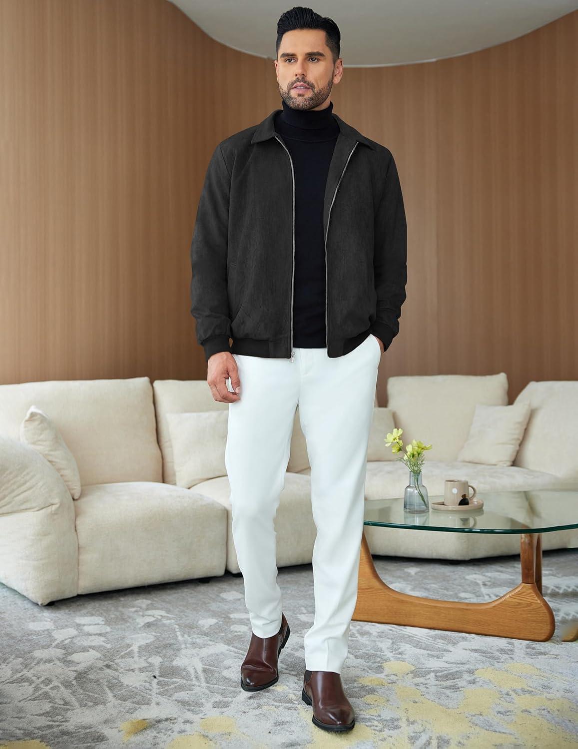 COOFANDY Men’s Casual Suede Bomber Jacket Lightweight Full Zip Up Jackets Vintage Faux Leather Jacket(Black)