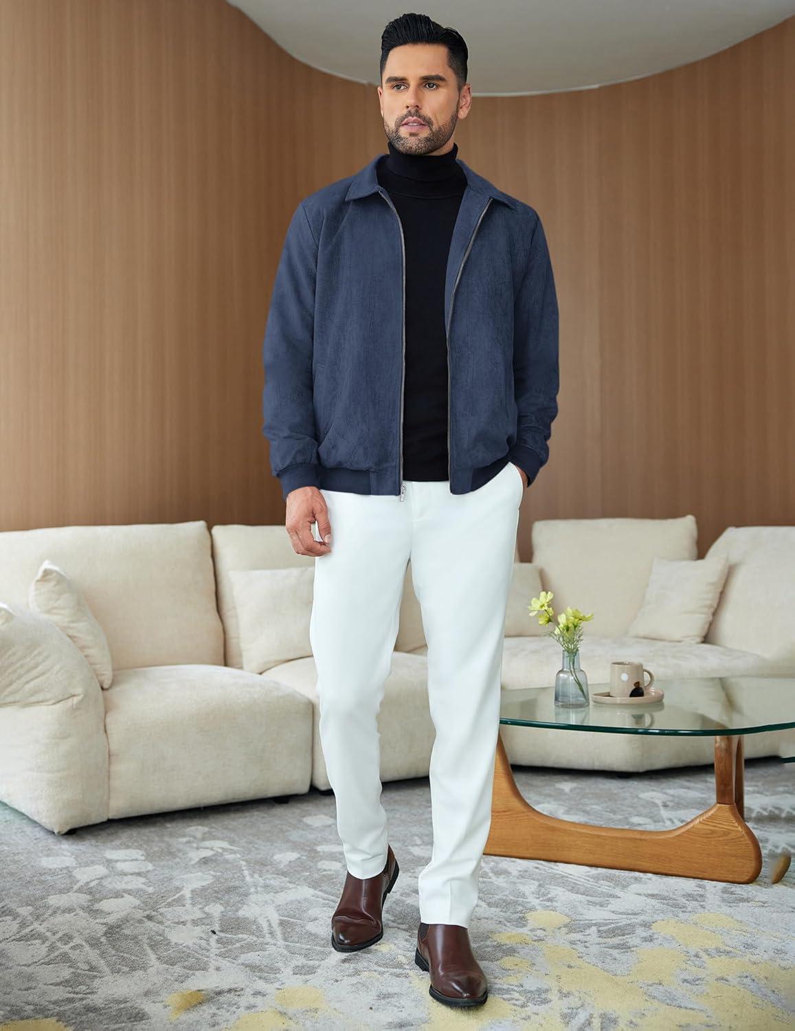 COOFANDY Men’s Casual Suede Bomber Jacket Lightweight Full Zip Up Jackets Vintage Faux Leather Jacket(Navy Blue)